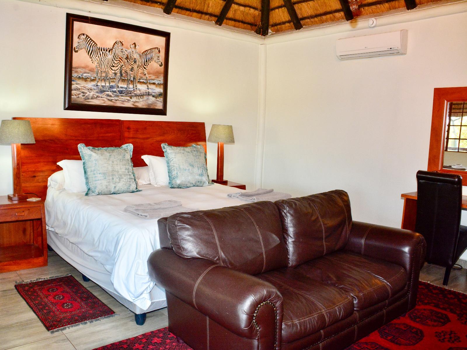 Perched on the edge of the ridge, all the rooms overlook the stunning Mopane bushveld and enjoy amazing morning views of Dongola Hill on the horizon. Air-conditioned for comfort, the rooms are furnished with king-size beds that can convert to twin beds on request, a desk, a TV and tea and coffee facilities in some. Each of the rooms has an en-suite bathroom with a shower.