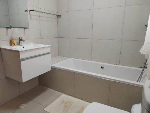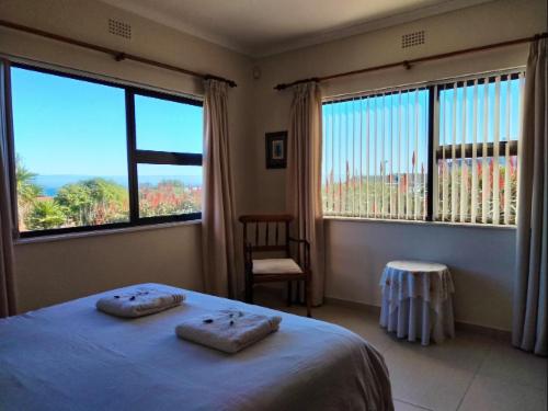 Nestled in the Cape West Coast, Lugkasteel offers prime sea views of Yzerfontein. Accommodating five guests, this home is the ideal beach getaway spot.The house comprises three bedrooms and three bathrooms. The main bedroom is fitted with a queen-size bed and an en-suite bathroom containing a shower.The second and third bedrooms have single beds and share a bathroom with a bath as well as a shower. A third separate toilet is available for guests. A fully-equipped kitchen with a fridge, microwave, stove, oven, dishwasher and washing machine can be found dow