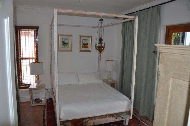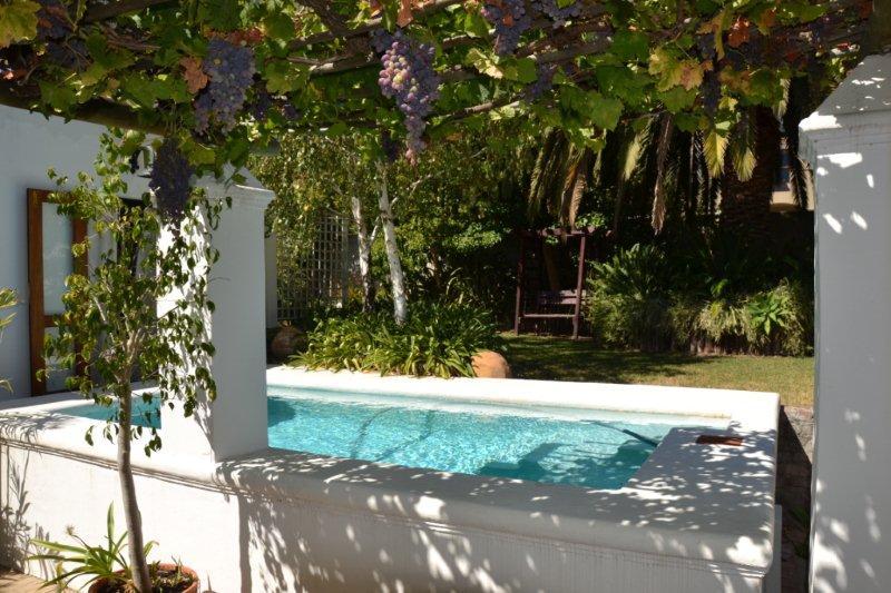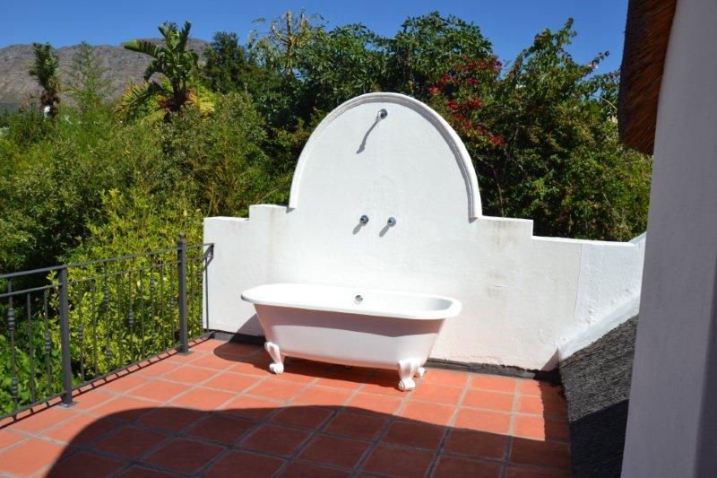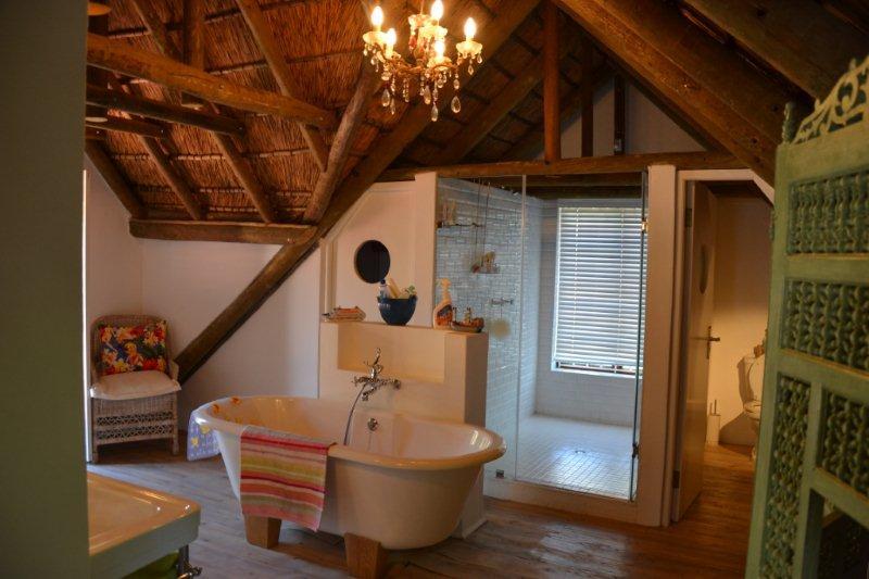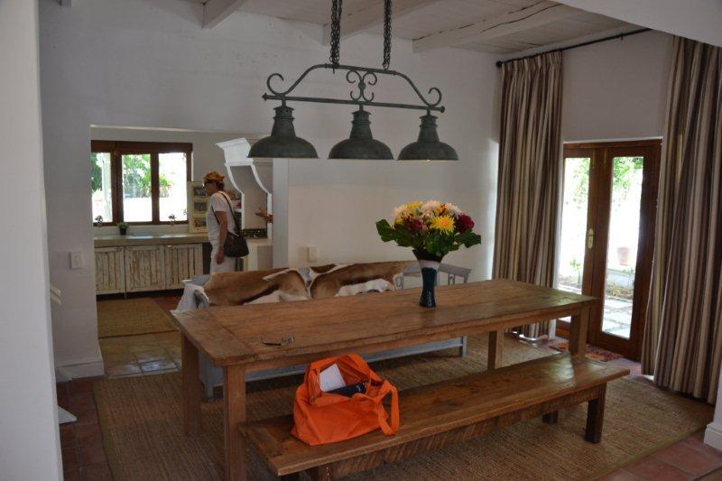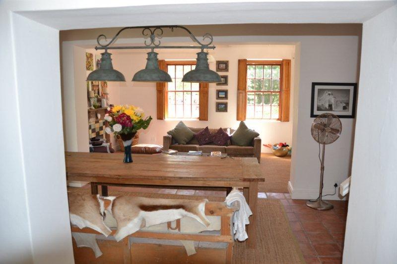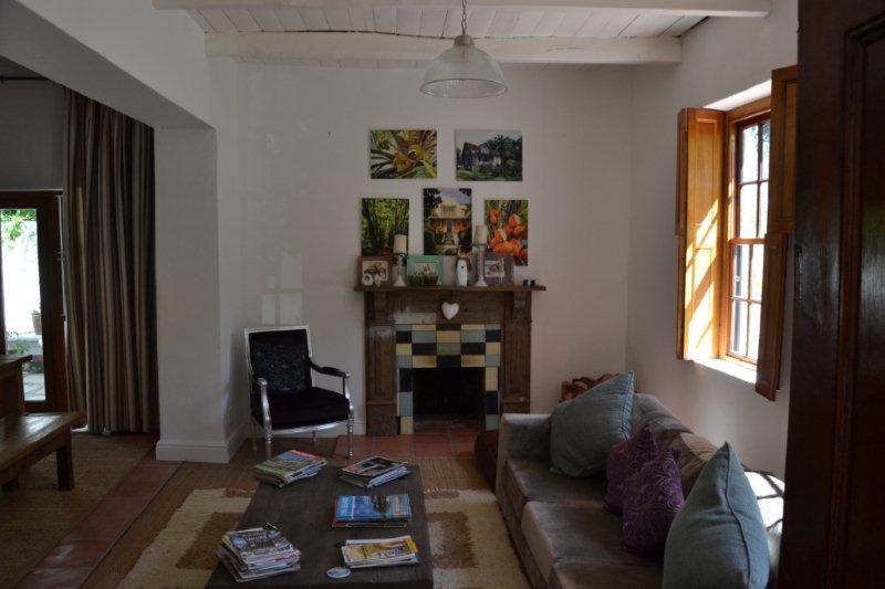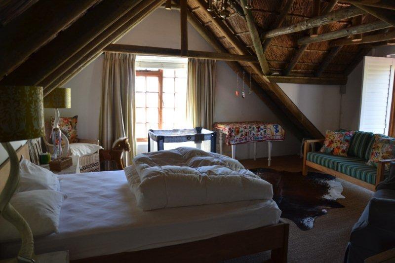 This Luxury Thatched Cottage was built in 1882 and located in a quiet residential area of Franschhoek. Franschhoek which means ‘French Corner’ is a small town that lies in a beautiful wine valley 75 km from Cape Town and within half an hour’s drive from Stellenbosch, Paarl, Wellington and Somerset West wine routes.The cottage can comfortably accommodate up to eight guests and comprises four bedrooms and an open-plan lounge, dining and kitchen area. The bedrooms each contain a double bed or twin single beds and an en-suite bathroom.The comfortable lounge includes a log