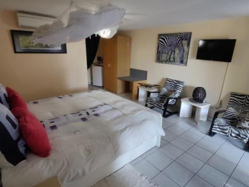 Maison Ambre Guesthouse, located in the heart of Windhoek, offers comfortable accommodation with all the amenities needed for a relaxing stay. The private rooms are ideal for couples or small families, ensuring a welcoming and enjoyable experience.Accommodation at Maison Ambre Guesthouse ranges from two-sleeper to four-sleeper options. The two-sleeper rooms feature two single beds that can be combined into a king-size bed. The three-sleeper rooms include two single beds and a sofa bed for children, while the four-sleeper rooms offer either twin beds or a double bed with two sofa be
