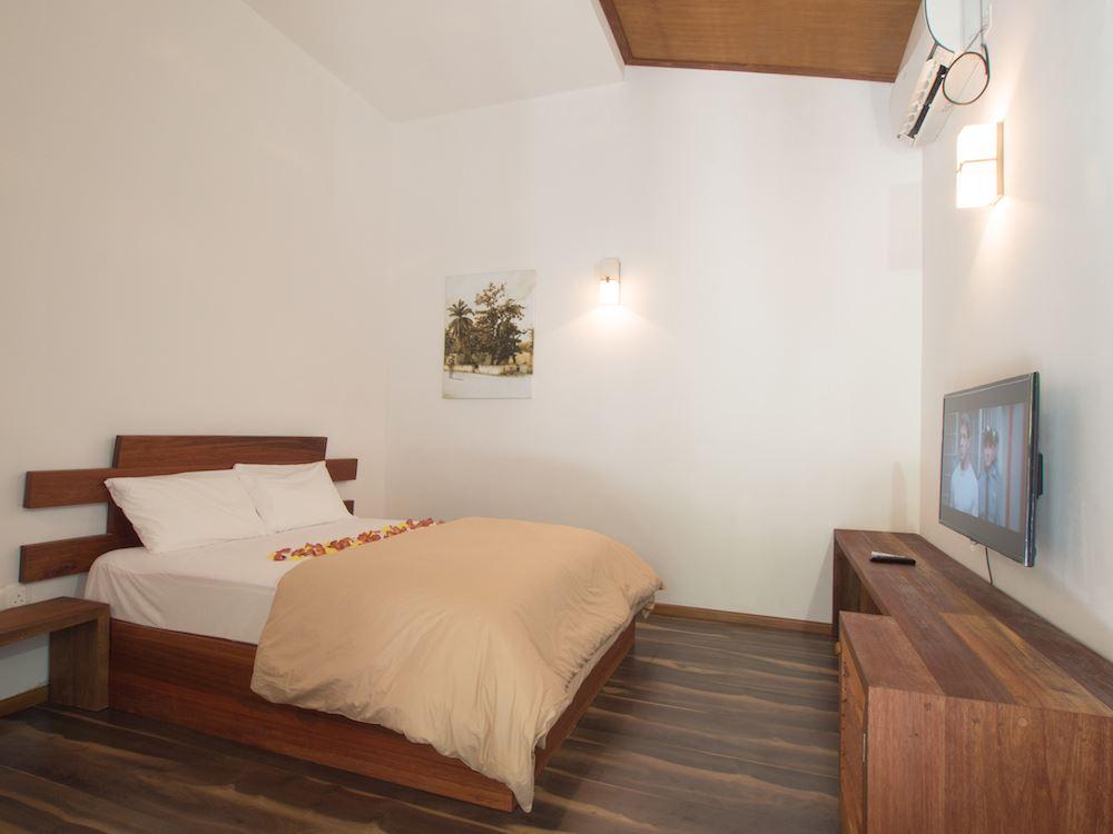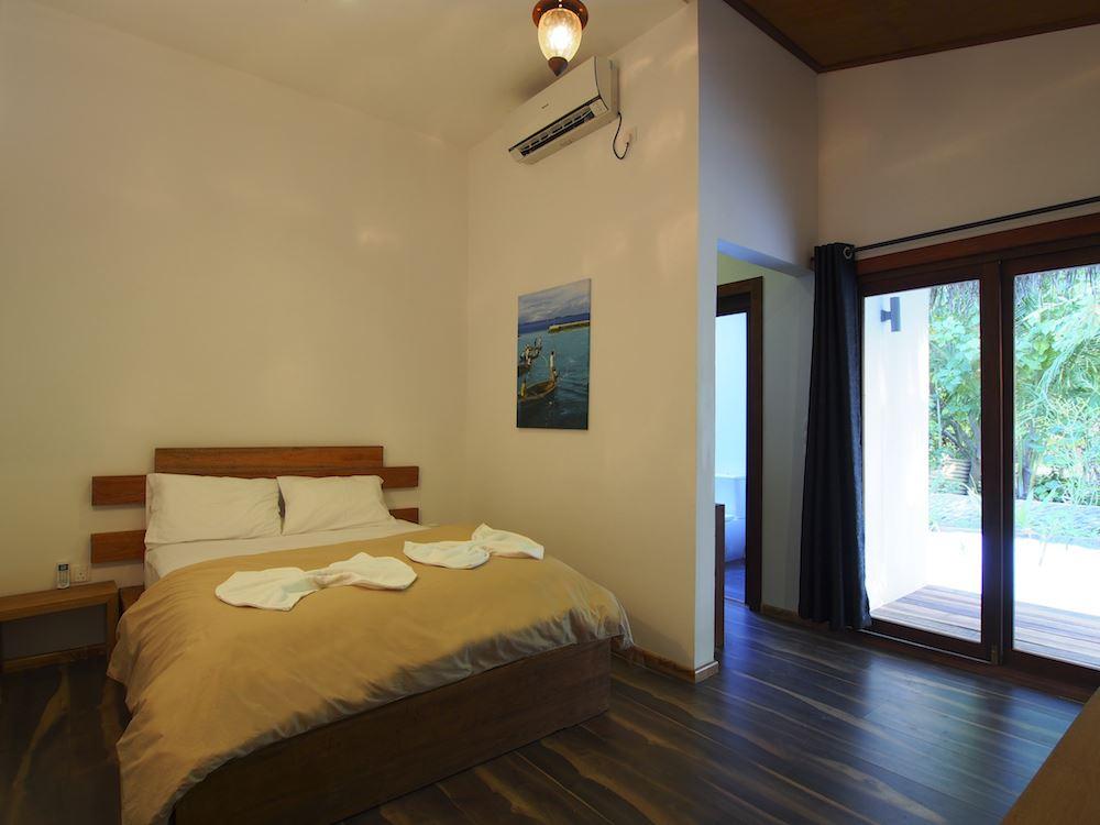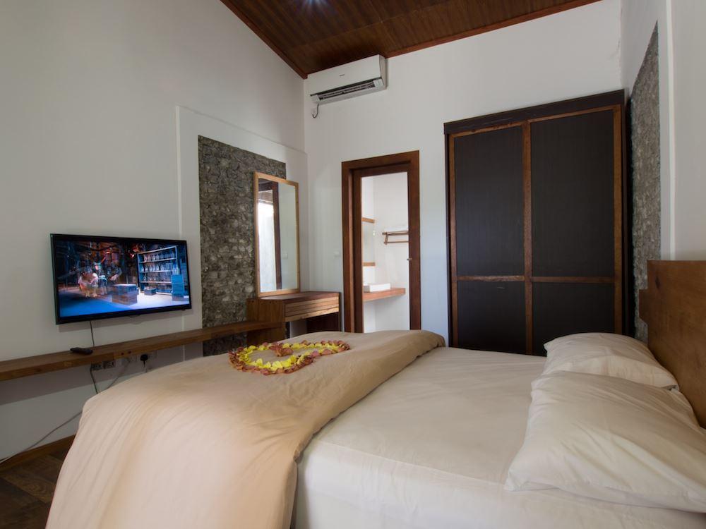 Revel in the spacious and minimalist design of our private rooms, each fitted with a king-size bed and a plasma TV with satellite channels. It is a stunning fusion of modern contemporary designs with traditional Maldivian forms, offering beautiful views and privacy.