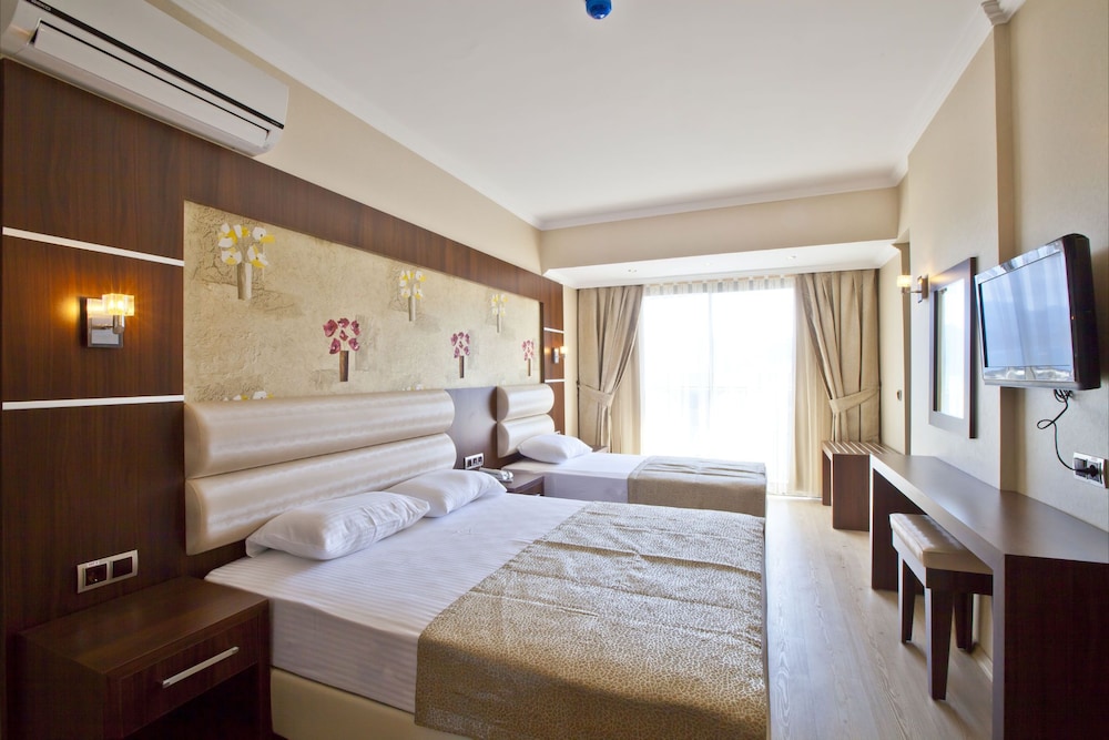 Includes 3-star hotels and rural hotels. (general) Located directly on the private, sandy beach, the splendid hotel Malibu Beach enjoys magnificent views over the bay of Marmaris and the surrounding mountains. A wide range of restaurants, bars and shops can be found in the immediate vicinity, while the resort centre with its fantastic shopping options, the iconic castle and the harbour are within easy reach. Dalaman International Airport is about 100 km away. The attractive beachfront hotel offers bright and spacious rooms with balconies boasting panoramic bay and mountain views. They have an elegant and modern interior design, and features include complimentary WIFI, air-conditioning and LCD satellite-TV. There is an outdoor pool, sun loungers and parasols on the beach and an on-site disco. Guests can indulge in total relaxation in the hotel's spa and wellness area. The restaurant has a nice outside terrace and there is a popular beach bar. A perfect choice for a beach holiday in an urban environment.
