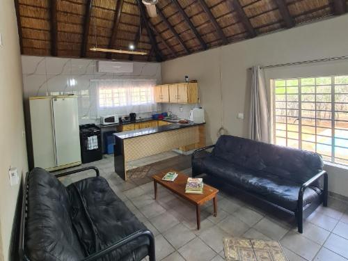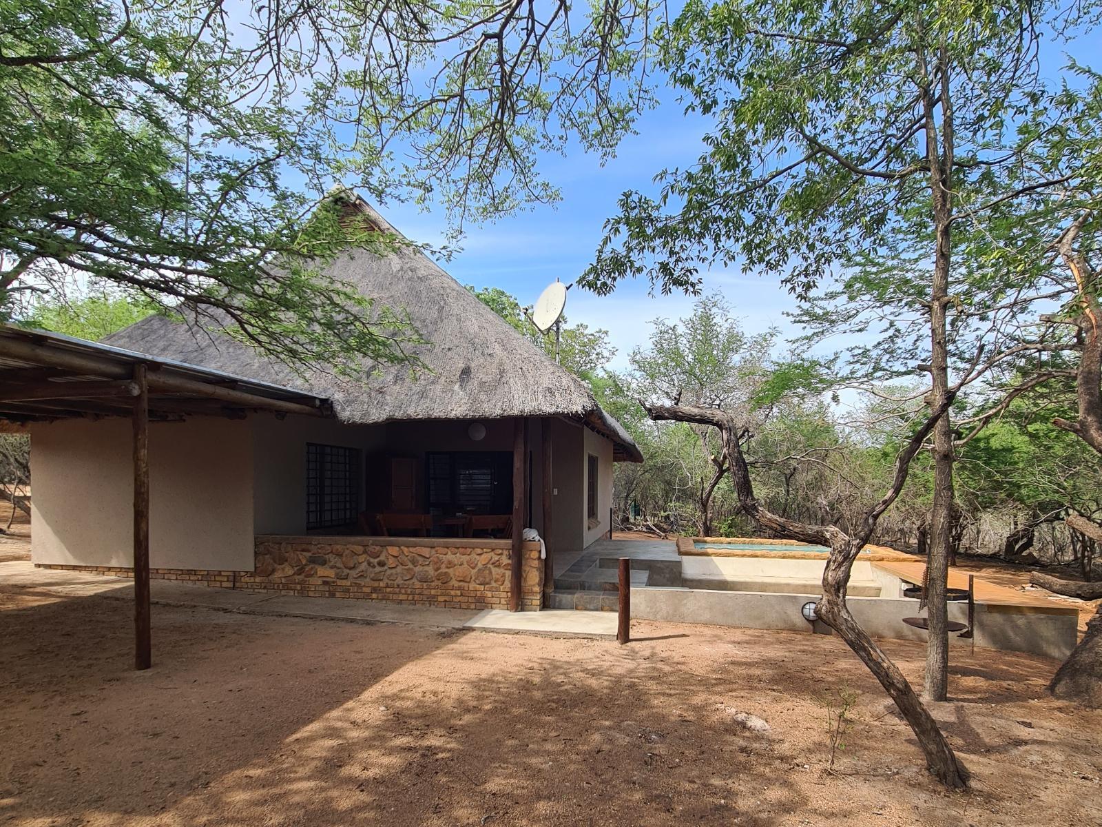 Mangata offers a serene escape within the heart of Marloth Game Park. The property is designed for those seeking a genuine connection with nature, as the back of the house faces onto untouched parkland. This open landscape ensures that no further development can occur, allowing South African wildlife to roam freely right to the edge of the property.The house features a spacious open-plan lounge and kitchen area equipped with a large air conditioner and ceiling fan for climate control. The kitchen includes a breakfast nook, providing modern essentials including a gas stove, oven, an