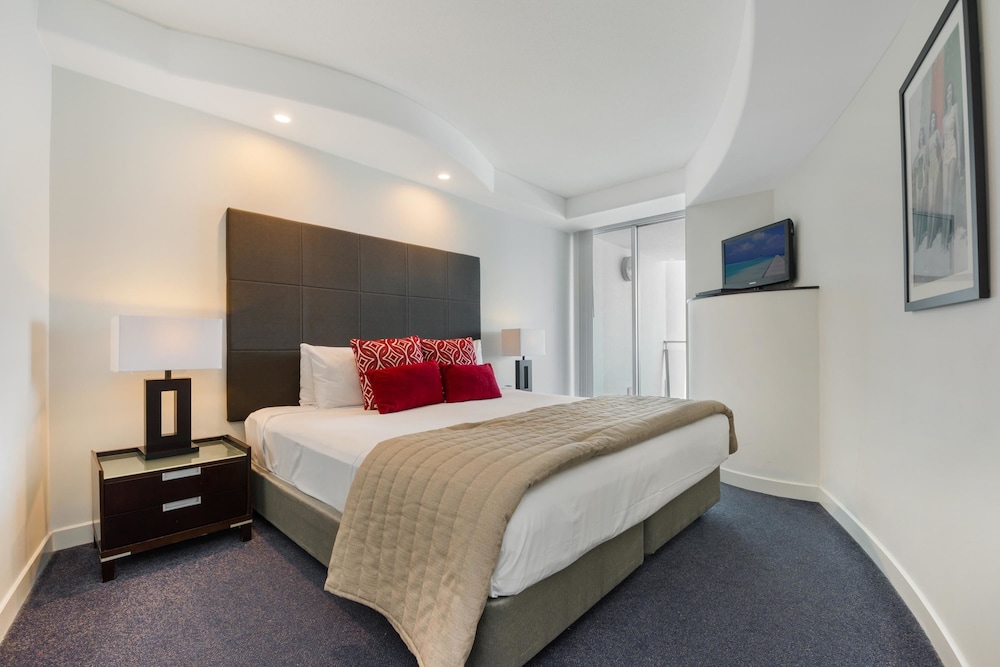 This 4 star hotel is located in the city centre of Mooloolaba. The Hotel has a coffee shop, an outdoor swimming pool and a fitness centre/gym.