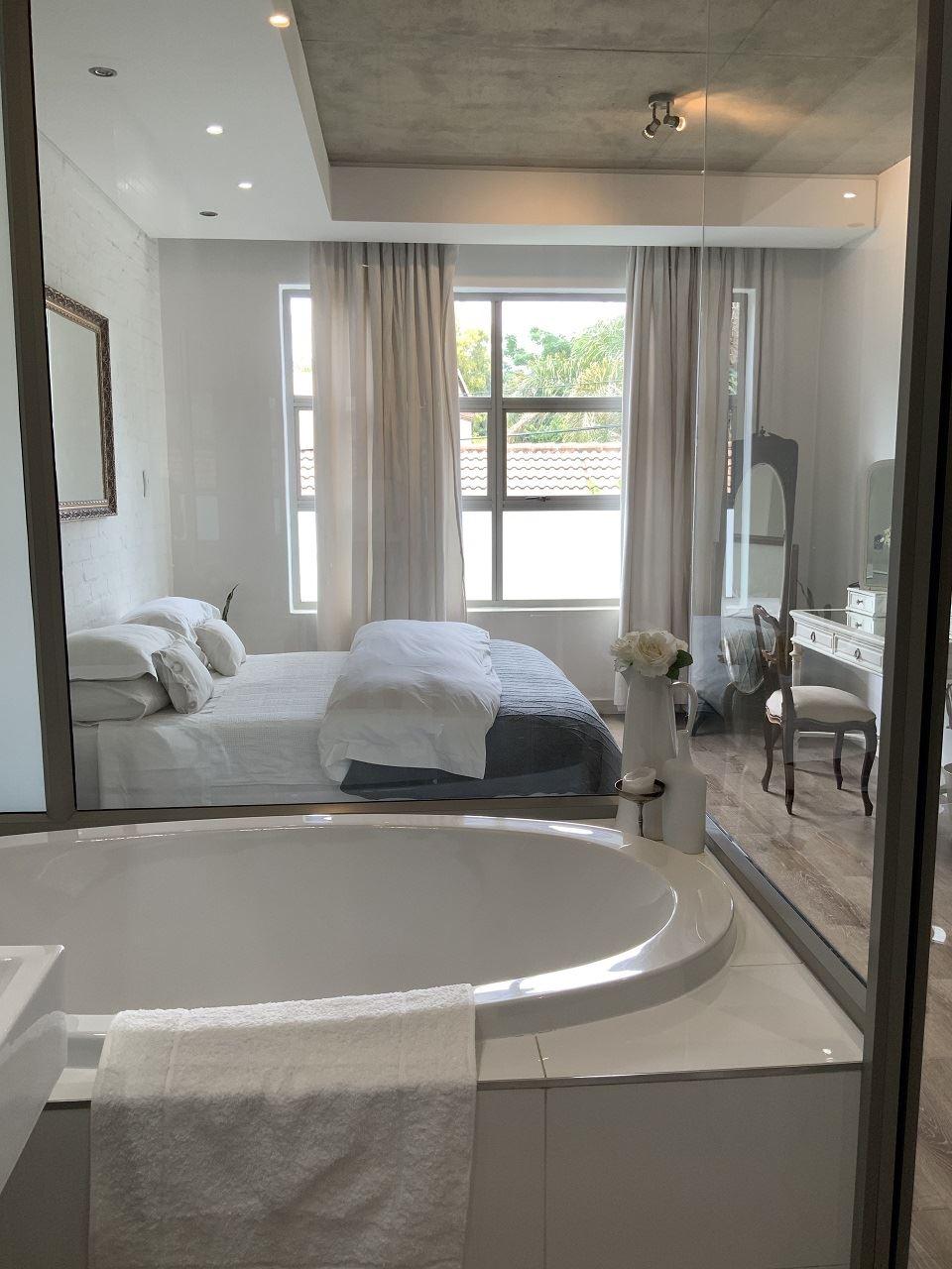 Modern, Tranquil and Stylish Condo in the heart of Menlo Park, Pretoria. Ideal for business travels with a need for more space than what a hotel room offers. My apartment is perfect for longer stays and therefor I do require an minimum stay. Walking distance to Hazel food market, 2 minute drive to most trendy restaurants and 5 minutes from Menlyn Maine. The apartment offers an open plan, fully equiped kitchen and livingroom with an outdoor patio and guest bathroom.The upstairs offer one ensuite bed and bathroom with a big comfortable bed and luxurious bath tub. P