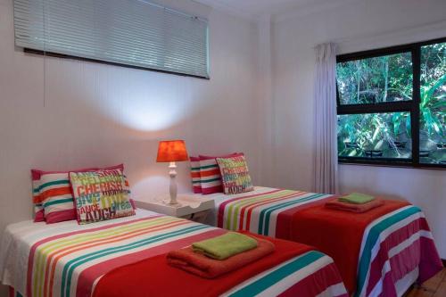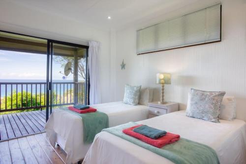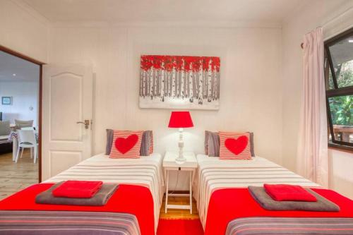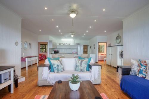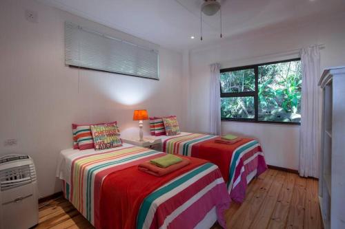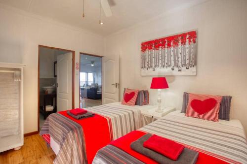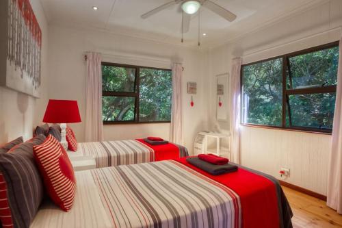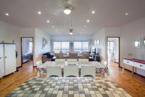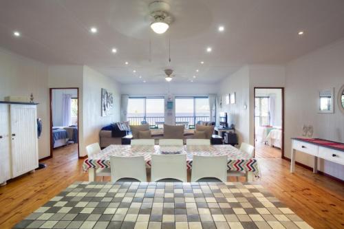 This stylishly decorated house is situated on Mar Azul Estate in Ponta Malongane. The house sleeps 10 people in 4 en suite bedrooms with single beds that can be converted to double beds and can be moved apart if needs be. There is a sleeper couch in the living area. The whole house has ceiling fans and all 4 bedrooms have airconditioning.The living area has DSTV (no need to take a card and decoder with, it is set up), flatscreen TV, CD player, and a music system. The house is private and has gorgeous sea views. The fully equipped kitchen has all you require in a kitchen, including