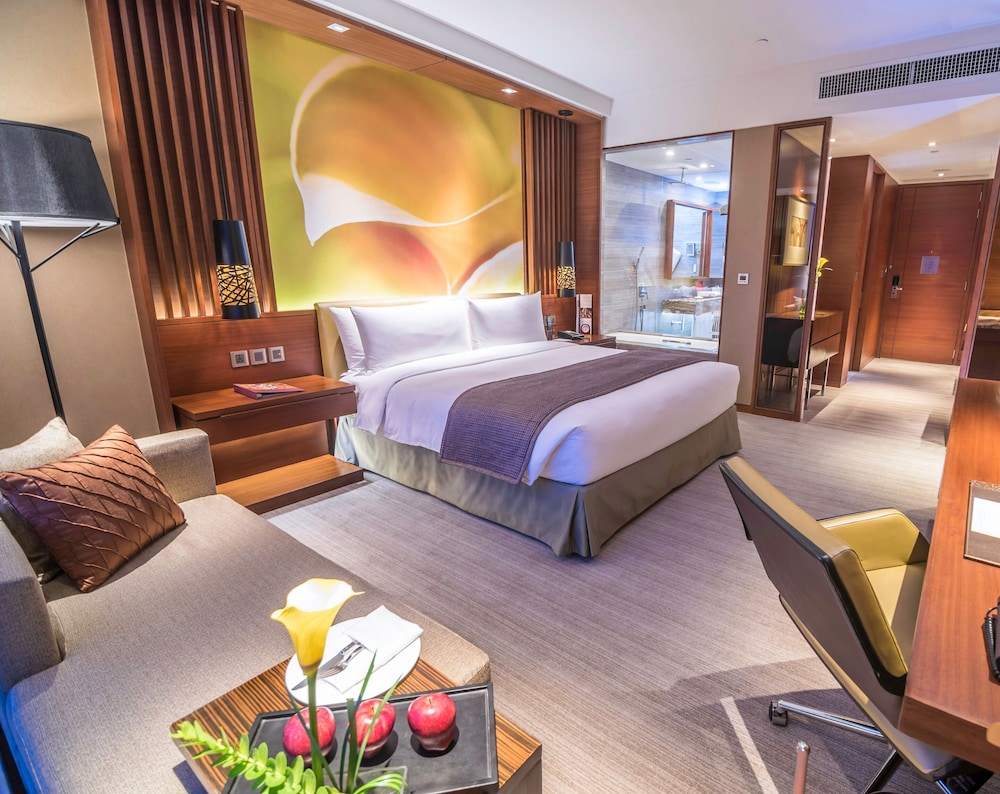 Marco Polo Ortigas Manila is a five star property located in Ortigas Commercial Business District between Quezon City, Mandaluyong and Pasig City. Shopping and entertainment areas such as SM Megamall, The Podium and Robinson's Galleria are just within a short walk. All rooms are equipped with modern amenities such as a Nespresso coffee machine, mini bar, personal safe, dual-docking device with Bluetooth technology for personal gadgets, LCD TV, high-speed Wi-Fi access and large bathroom with rain shower and marble bathtub. Dining options include an all-day dining restaurant featuring live show kitchens, a contemporary Chinese restaurant serving traditional and authentic Cantonese cuisine, a cafe and a lounge bar. Leisure facilities include an infinity indoor swimming pool, fitness centre, sauna and Jacuzzi. This luxury hotel also features a spa offering massage services and a range of wellness treatments. Ninoy Aquino International Airport is 15 km away.