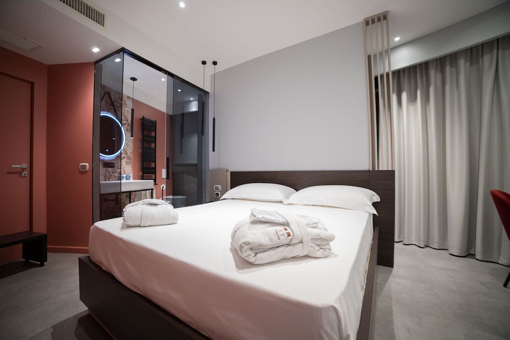 Featuring a restaurant and a terrace Marconi Hotel is located 6 km from Rende. It offers air-conditioned rooms and free WiFi. The Rende-Cosenza Nord exit of the A3 motorway is located just in front of the property.Each elegant room at the 4-star Marconi will provide you with a satellite flat-screen TV and a minibar. The private bathroom includes a hairdryer and slippers. An electric kettle and iron are available on request.You can enjoy a sweet and savoury buffet breakfast daily including pastries cold meats fresh fruit and organic products.Additional facilities offered at the property include a shared lounge with TV a reading room and luggage storage. Parking is free on site. Tyrrhenian Sea is reachable by car in 25 minutes while Lamezia Terme International Airport is 70 km away.
