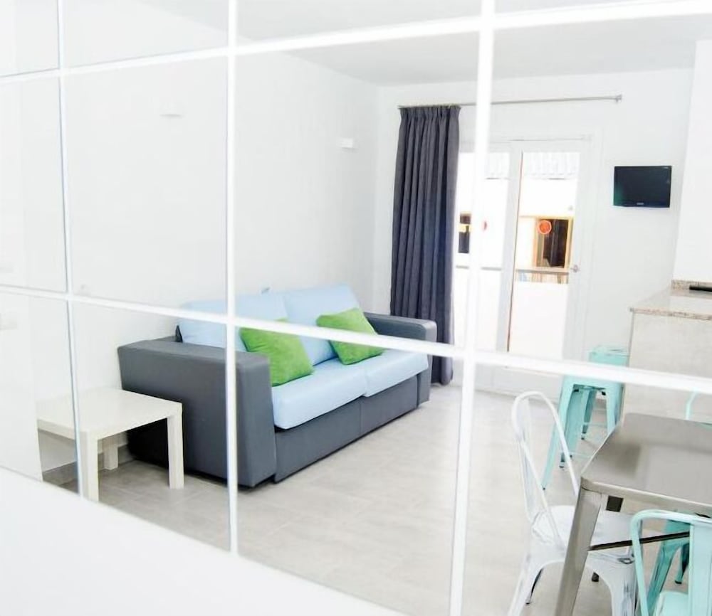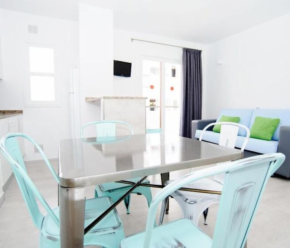This complex lies in the tourist centre of San Antonio, just 400 m from the nearest beach and the resort centre where guests will discover an abundance of shops, boutiques, cafés, bars, restaurants and further shopping and entertainment venues. The complex is specially suited to young people. Links to the public transport network lie within walking distance (400 m away).The apartment complex offers 21 apartments spread over 4 floors. Facilities include an inviting foyer area with a reception desk and a bar.The functional apartments come with a combined lounge/ bedroom, an en suite bathroom, a hire safe, a separate bedroom and a balcony or terrace.In the well-kept outdoor complex there is a swimming pool and a sun terrace to take advantage of. Guests are able to play a round of tennis on the on-site courts.