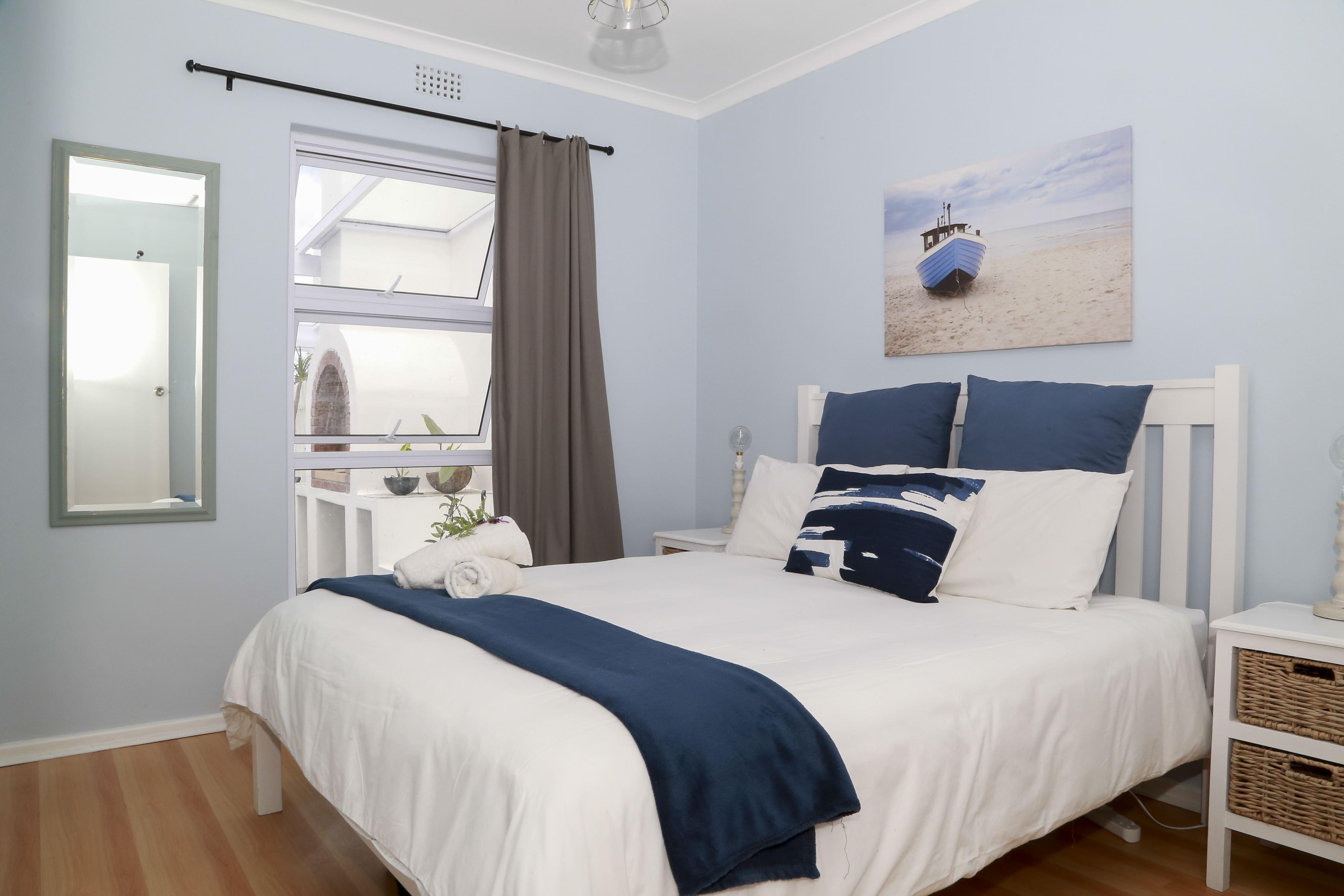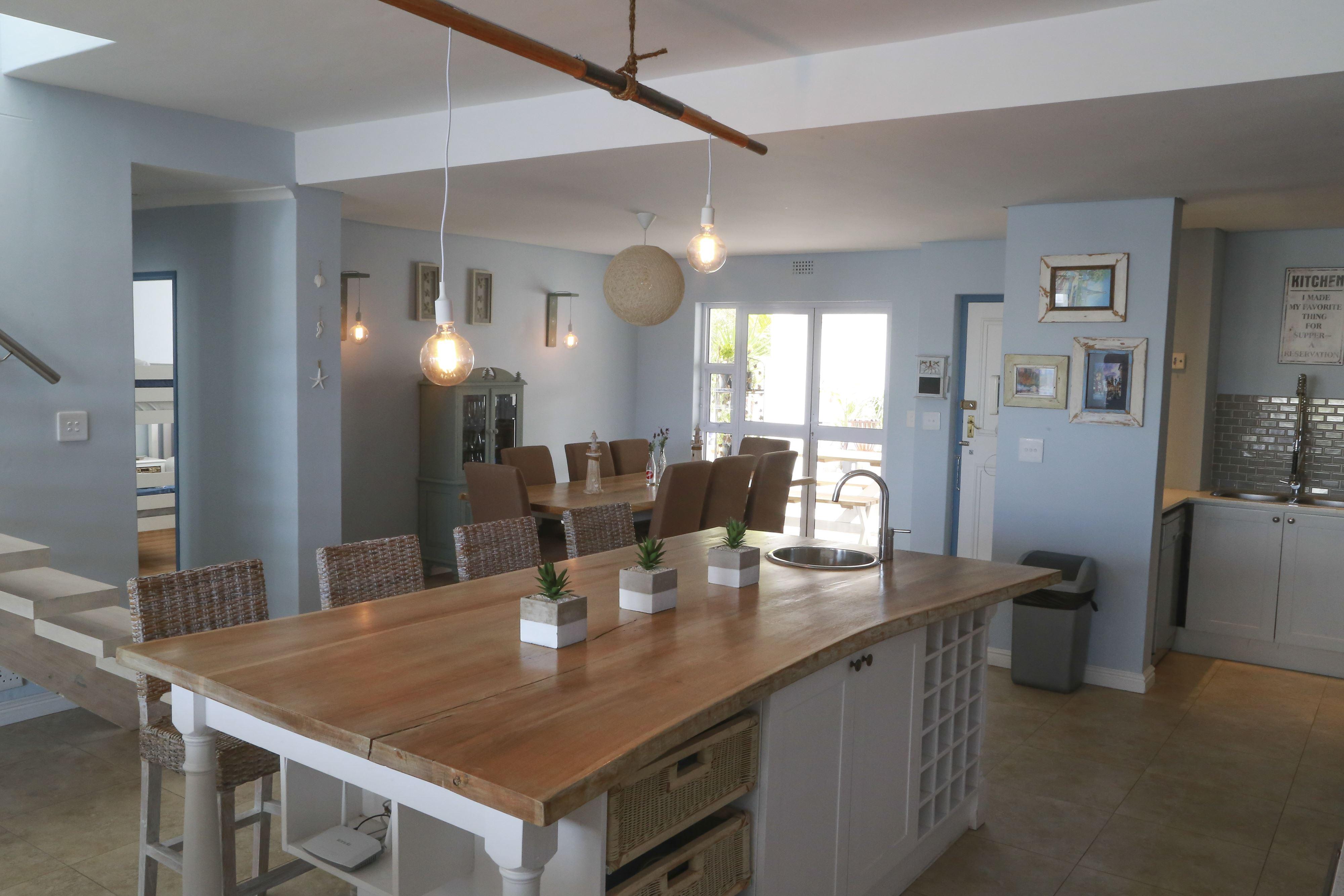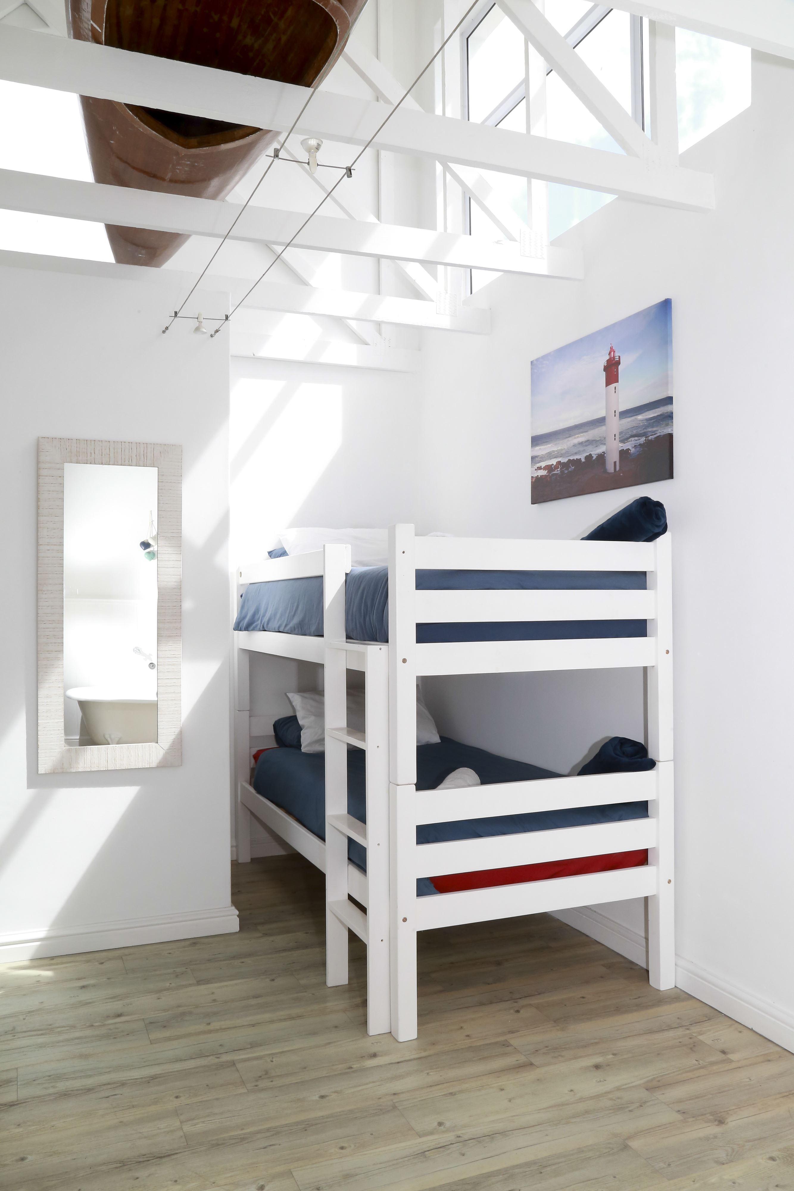 Marina Beach House is a private waterfront self-catering holiday home located in Marina Da Gama. Natural wood, whitewashed furniture and a large open-plan lounge area make the house ideal. Marina Beach House is on an island with a security access point and is very safe.This house sleeps 10 and comprises three bedrooms, two bathrooms and an open-plan kitchen, dining and living area. The house is nice cosy, stylish and has beautiful finishes.The first bedroom is on the top floor and has a queen size bed with a bunk bed in the adjoining dressing room. The en-suite bathroom