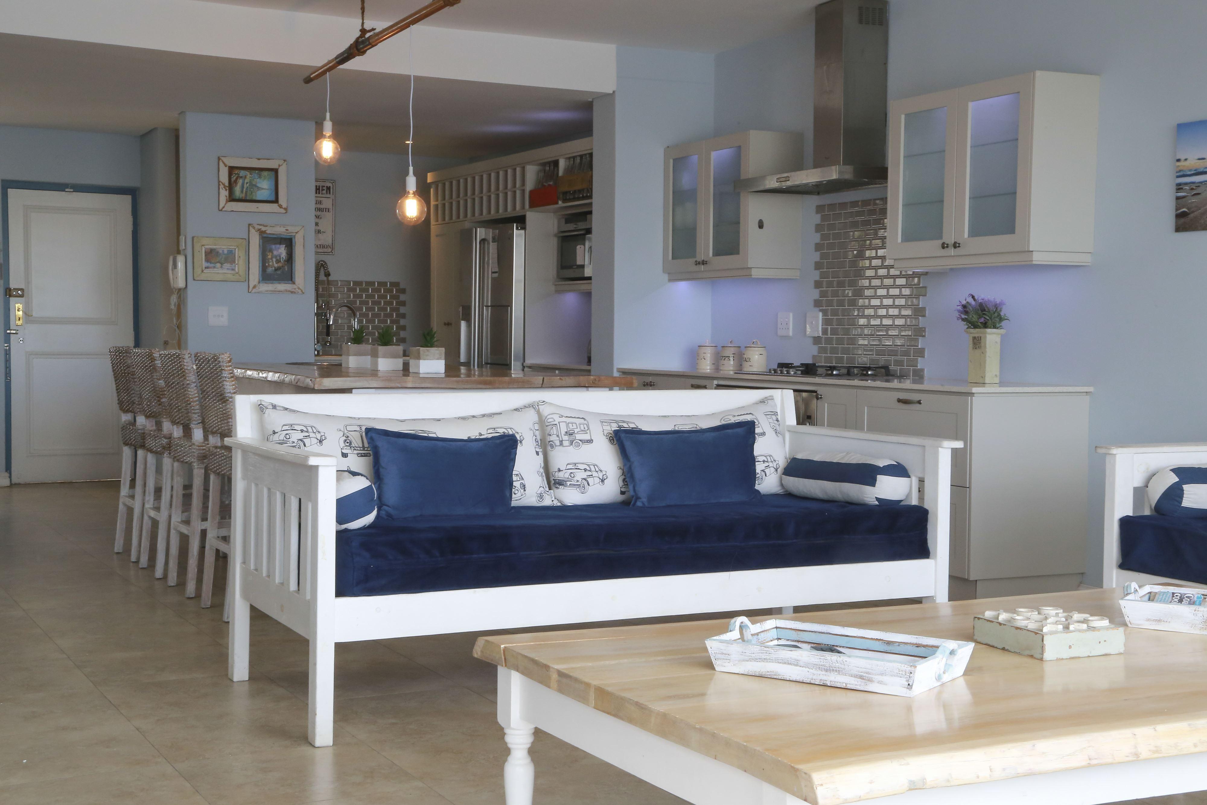 Marina Beach House is a private waterfront self-catering holiday home located in Marina Da Gama. Natural wood, whitewashed furniture and a large open-plan lounge area make the house ideal. Marina Beach House is on an island with a security access point and is very safe.
