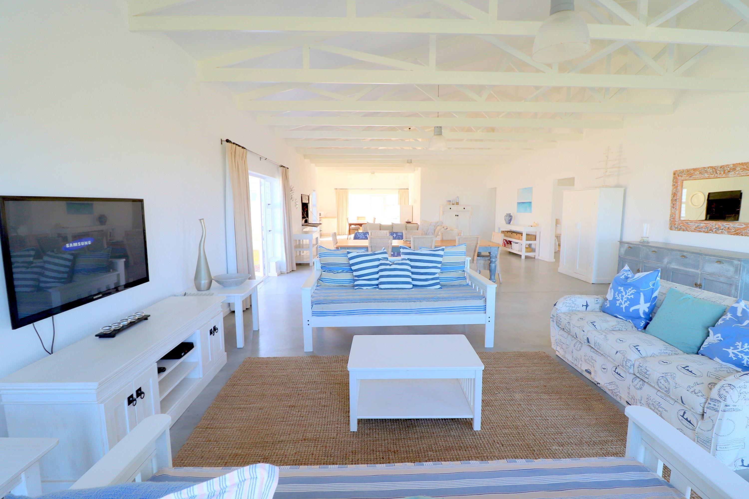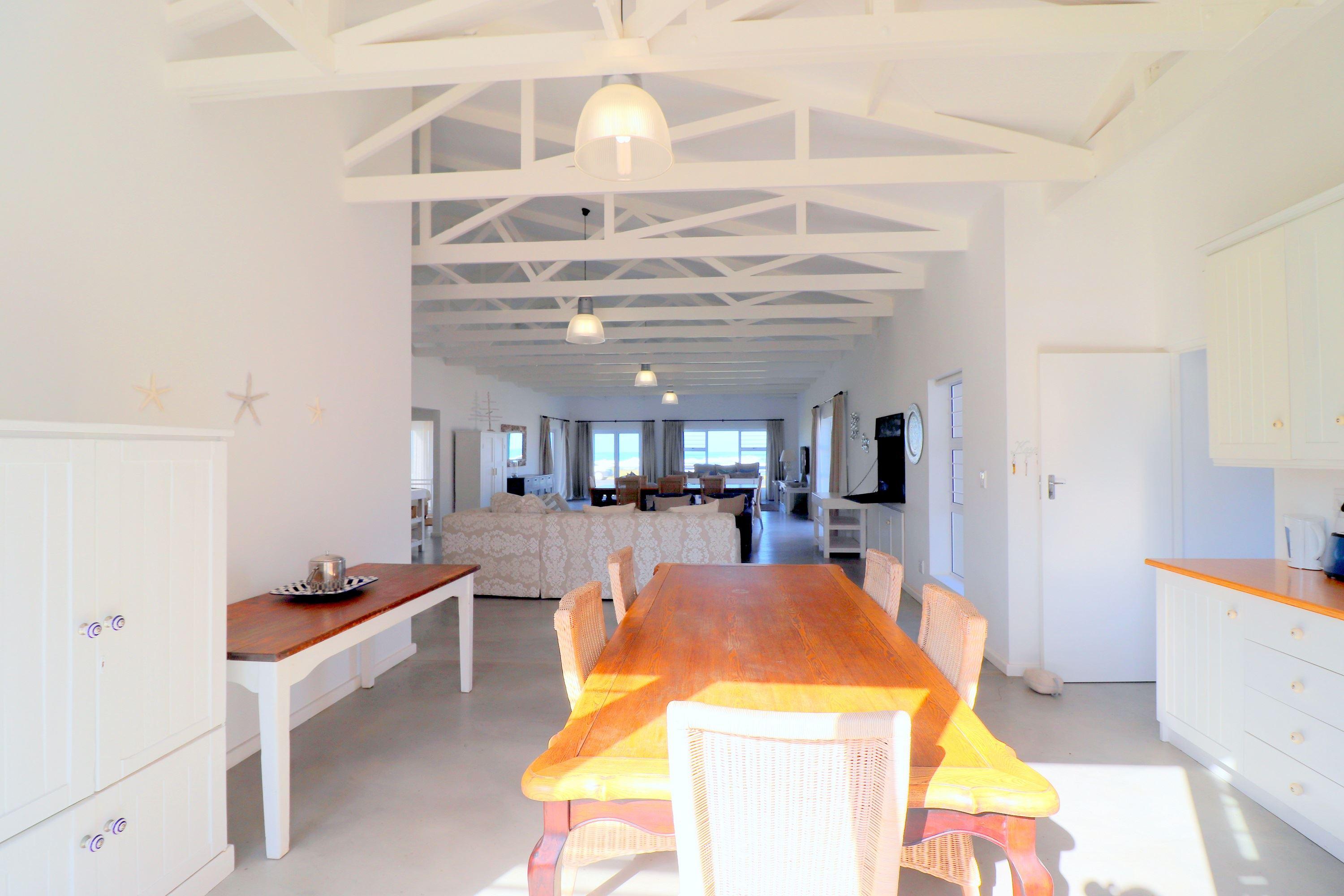 Situated along the breathtaking seaside, this exquisite and contemporary open-plan house is nestled in a highly prestigious area. Boasting modern conveniences such as a Washer and Dryer as well as DStv, this luxurious haven is designed to cater to your every need.With four beautifully appointed bedrooms and two fully-equipped bathrooms, this enchanting retreat can comfortably accommodate up to eight guests. Indulge in the ultimate South African lifestyle as you savor the indoor and outdoor braai facilities, perfect for hosting delightful gatherings. Moreover, the enclos