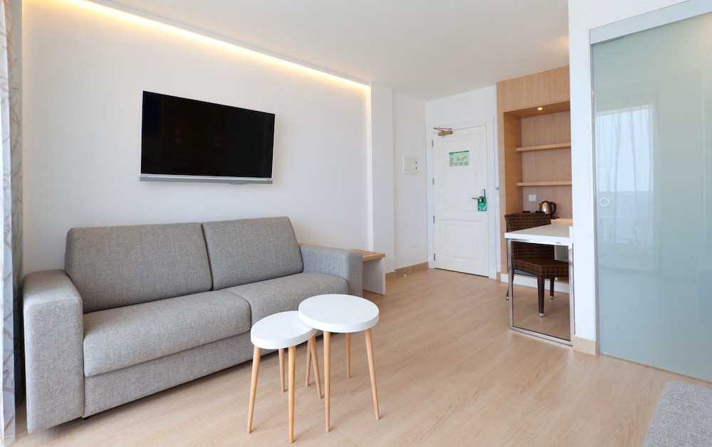 This complex of apartments is located beside the sea just 500 m from the nearest beach. A diverse selection of shops, restaurants and bars as well as links to the transport network can be found in the vicinity. The nearest nightclub is about 3 km away and the town of San Antonio is 5 km from the hotel.Renovated in 2007, this 4-storey complex comprises a total of 103 apartments and features a foyer with a 24-hour reception desk, a safe, a currency exchange desk and lifts. In addition, there is a café, a bar, a games room, a TV room, a non-smoking restaurant and an à la carte restaurant (both fully air-conditioned) and a public Internet terminal. There is also a laundry service, medical assistance and a car park on offer to guests.The tastefully decorated apartments come with an en suite bathroom with a bathtub or a shower, a separate bedroom, a direct dial telephone, satellite/cable TV, Internet access, a kitchenette, a microwave, a minibar/fridge, tiling, a hire safe and a terrace (some of which enjoy views out over the sea).There is a freshwater swimming pool with a separate children's pool in the outdoor complex as well as a sun terrace with sun loungers and parasols laid out ready for use and a pool/ snack bar. Leisure options include table tennis, squash, bicycle and mountain bike hire, basketball and billiards (for an additional fee).