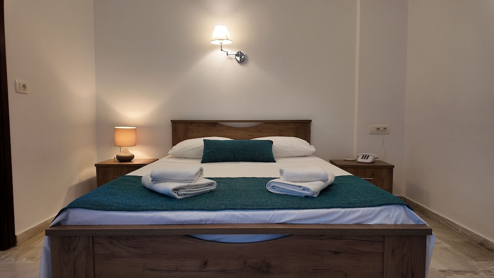 This family run hotel with fantastic views of the mountains is located in the village of Perissa, around 5 minutes' walk to the famous volcanic beach. In the area guests will be able to find some of the island's liveliest restaurants, taverns and nightclubs, as well as shops and public transport linking to the rest of the island. This is the perfect place for watersports such as jet skiing, parasailing, and scuba diving. Santorini Airport is 16 kilometres away, around 30 minutes by car.