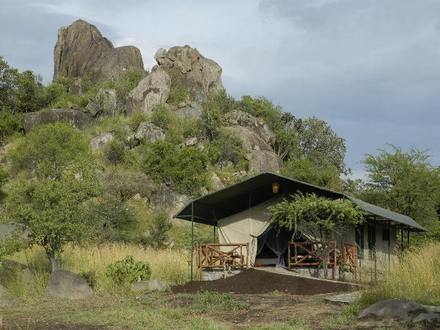 Scenically located in a glade, known as The place of the Klipspringer, and guarded by three million year-old granite towers, this luxury tented camp is unique. Cleverly located on one of the main annual migration corridors for over one million wildebeest, half a million zebras and gazelles, and their accompanying cast of predators, it is also located at the very epicentre of one of the world's most famous national parks.The camp is located in the Western Serengeti, 335 km from Arusha. The camp is adjacent to both the Seronera and Lobo airstrips and a meet-and-greet transfer servi
