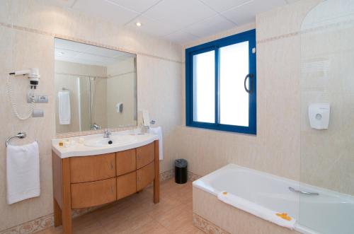 Set 600 metres from Salou Beach Medplaya Pirámide Salou offers an outdoor pool. Its air-conditioned rooms come with satellite TV and a private balcony.The modern Medplaya has simple bright décor throughout. Rooms are heated and have a safe and free minibar. The private bathroom comes with a hairdryer.The Pirámide Salou’s buffet restaurant serves Mediterranean dishes and features show cooking. There is also a poolside snack bar and entertainment is provided in the hotel lounge.Billiards table tennis and darts are available in the hotel games room. There is a free Wi-Fi zone and a 24-hour reception. You can hire a car from the tour desk and on-site parking is available for an extra charge.Port Aventura Theme Park is just 4 km away while Tarragona and Reus Airport are a 15-minute drive away.