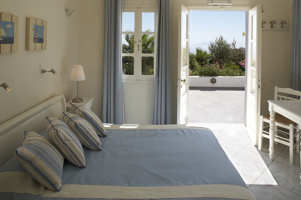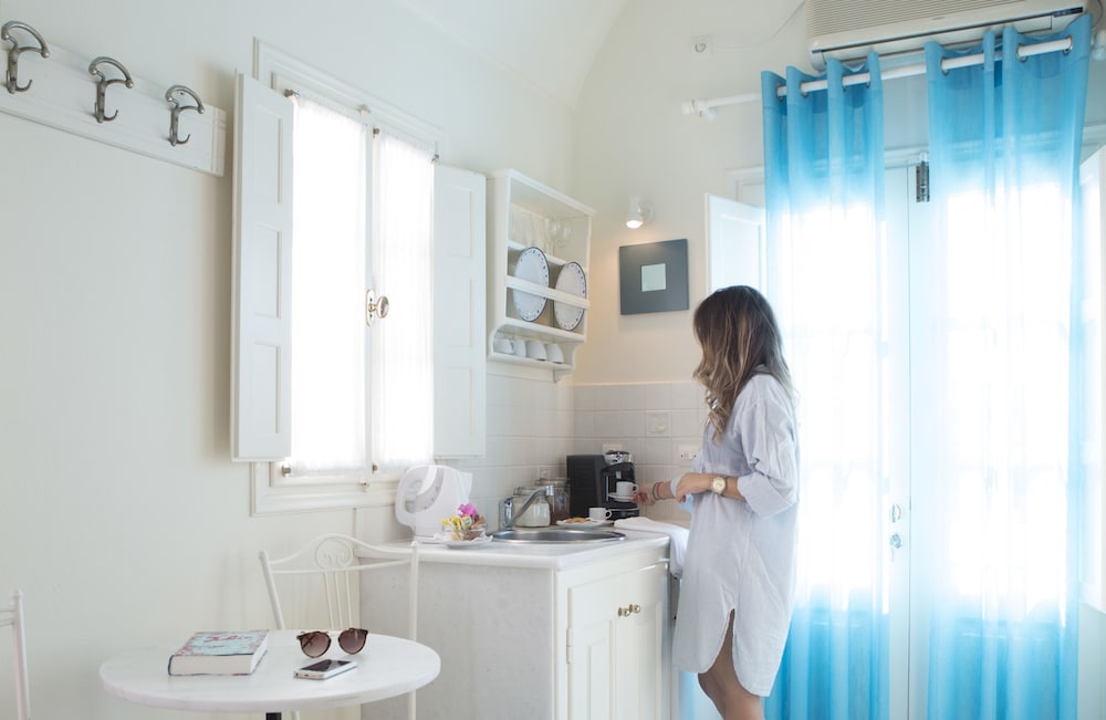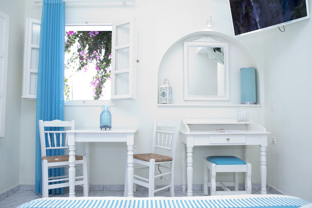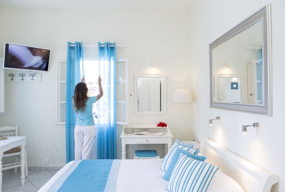 This small and elegant property featuring Aegean Cycladic architecture is located at the end of the famous village of Imerovigli. With its 6 double rooms it offers an ideal getaway for those seeking a quiet and cosy atmosphere for their romantic break. The traditional but stylish rooms open to a nice balcony or veranda where guests can enjoy the balmy Mediterranean breezes. An outdoor swimming pool is available for those who require a little extra privacy, while the rest can take full advantage of the nearby sandy beach. After a day of working on that healthy tan guests can unwind in the hot tub or use the bicycle hiring service in order to explore the surrounding area and hand-pick the perfect dinner venue. The bus station is a 5-minute walk away, while the Santorini (Thira) Airport is about 10 km away.