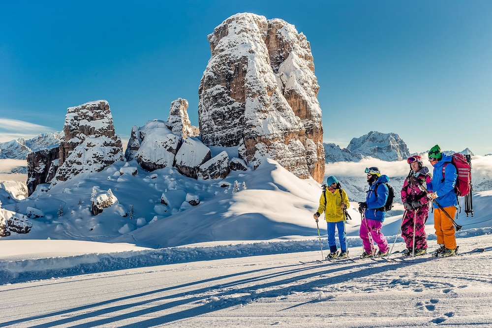 The Menardi Hotel is situated in a quiet area and about 1,5 km north of the Cortina town centre, the Pearl of the Dolomites.The complex services include a 24H front desk, restaurant, snack bar, garden, TV room, fire place, sauna, safety deposit box at reception (extra charge), parking space.The rooms amenities include satellite TV, telephone, heating, private bath/ shower, hairdryer. *Baby cot paid on spot 30€.Address: Via Majon 110, 32043 Cortina d'Ampezzo, Italy
