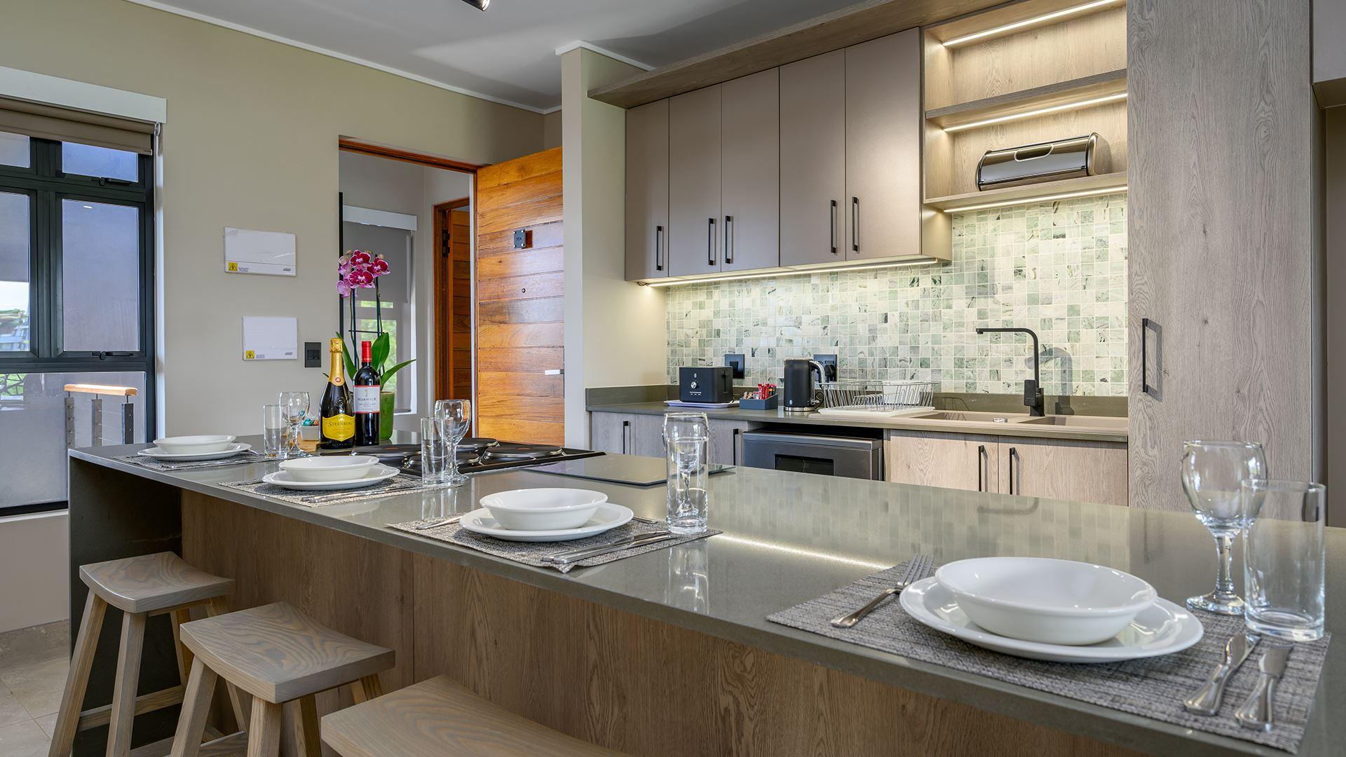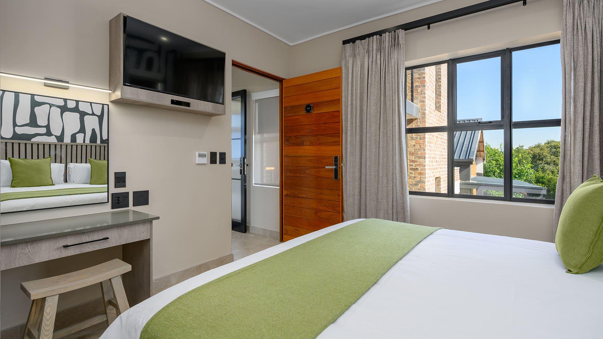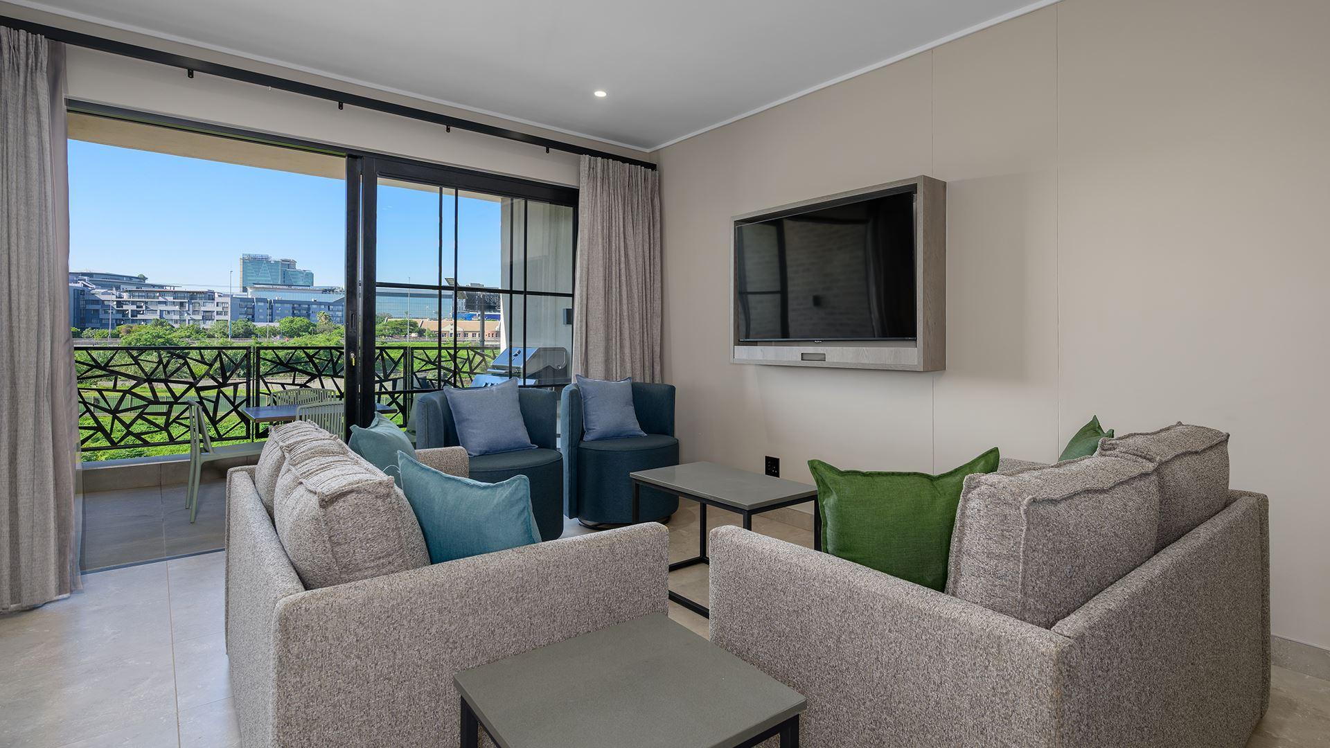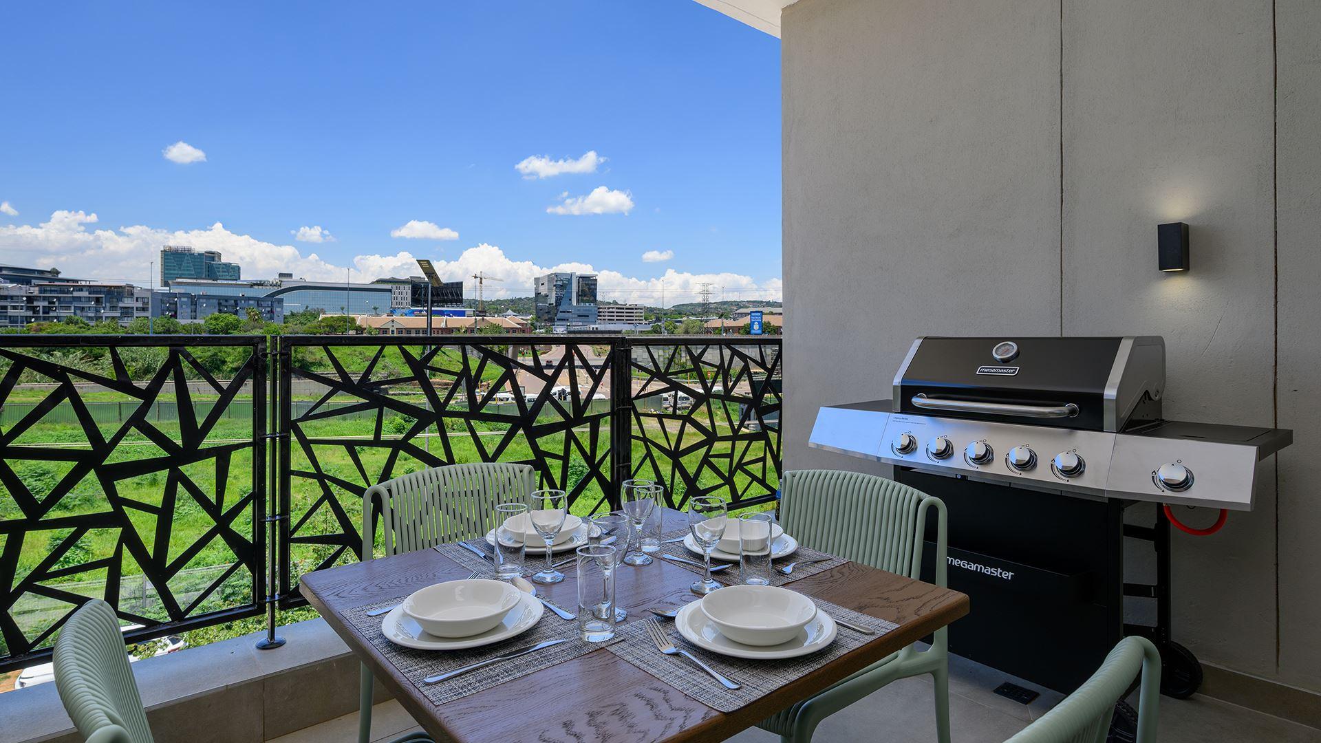 Stylish, spacious, and thoughtfully designed, the one-bedroom apartment is ideal for couples or business travellers seeking a modern urban escape. The open-plan living area flows onto a private balcony with outdoor seating and a gas braai, perfect for relaxed mornings or evenings after a busy day. Enjoy a fully equipped kitchen with quartz countertops, fridge, stove, microwave and dishwasher, plus air-conditioning, ceiling fans and TVs in both the bedroom and lounge. With backup power, water and secure undercover parking, this apartment offers everything you need for a comfortable and convenie