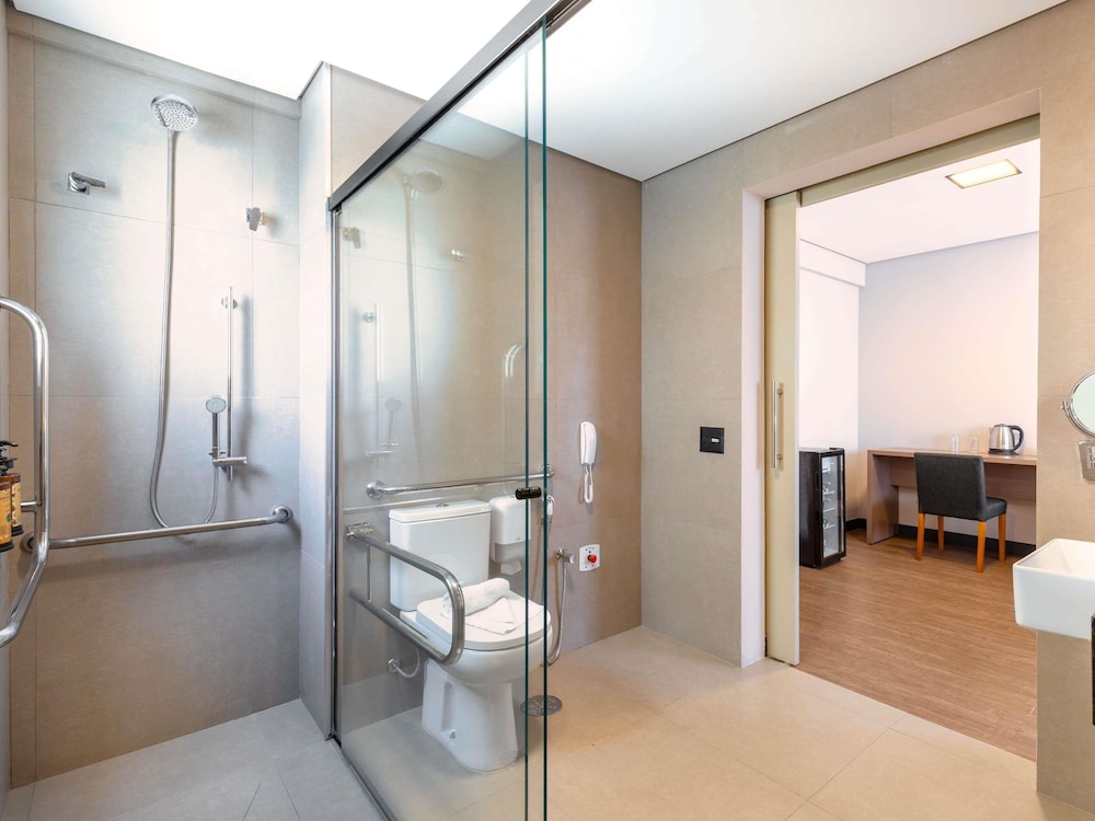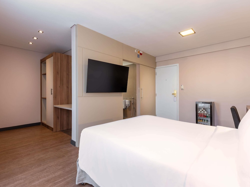 Located in Sao Paulo (Vila Olimpia), Mercure Sao Paulo JK is minutes from City Hall and Shopping Vila Olimpia. This hotel is within close proximity of Pinheiros Sport Club and Jockey Club.Rooms Make yourself at home in one of the 80 air-conditioned rooms featuring kitchens. Computers and complimentary wireless Internet access are provided, along with LCD televisions. Conveniences include phones, as well as safes and desks.Amenities Enjoy a range of recreational amenities, including an outdoor pool, a sauna, and a fitness center. This hotel also features complimentary wireless Internet access and concierge services.Dining Satisfy your appetite at the hotel's restaurant, which serves breakfast, lunch, and dinner, or stay in and take advantage of room service (during limited hours).Business, Other Amenities Featured amenities include a business center, dry cleaning/laundry services, and a 24-hour front desk. Self parking (subject to charges) is available onsite.