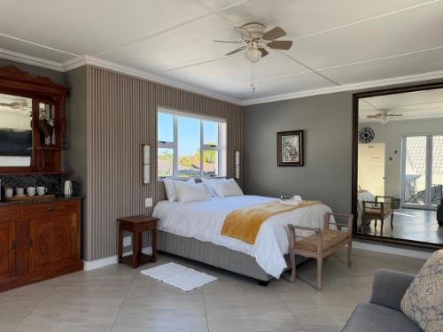 The queen room provides a relaxing space with a queen-size bed, DStv/Satellite TV, streaming services, a dining area, and convenient kitchenette essentials, including a bar fridge and microwave, with access to the garden for outdoor enjoyment. All rooms are non-smoking and include modern bathrooms with showers, fresh towels, bathroom amenities, hairdryers, and ironing facilities. Whether you are here for a short stopover or an extended stay, you will enjoy comfort, convenience, and a welcoming atmosphere throughout your visit.