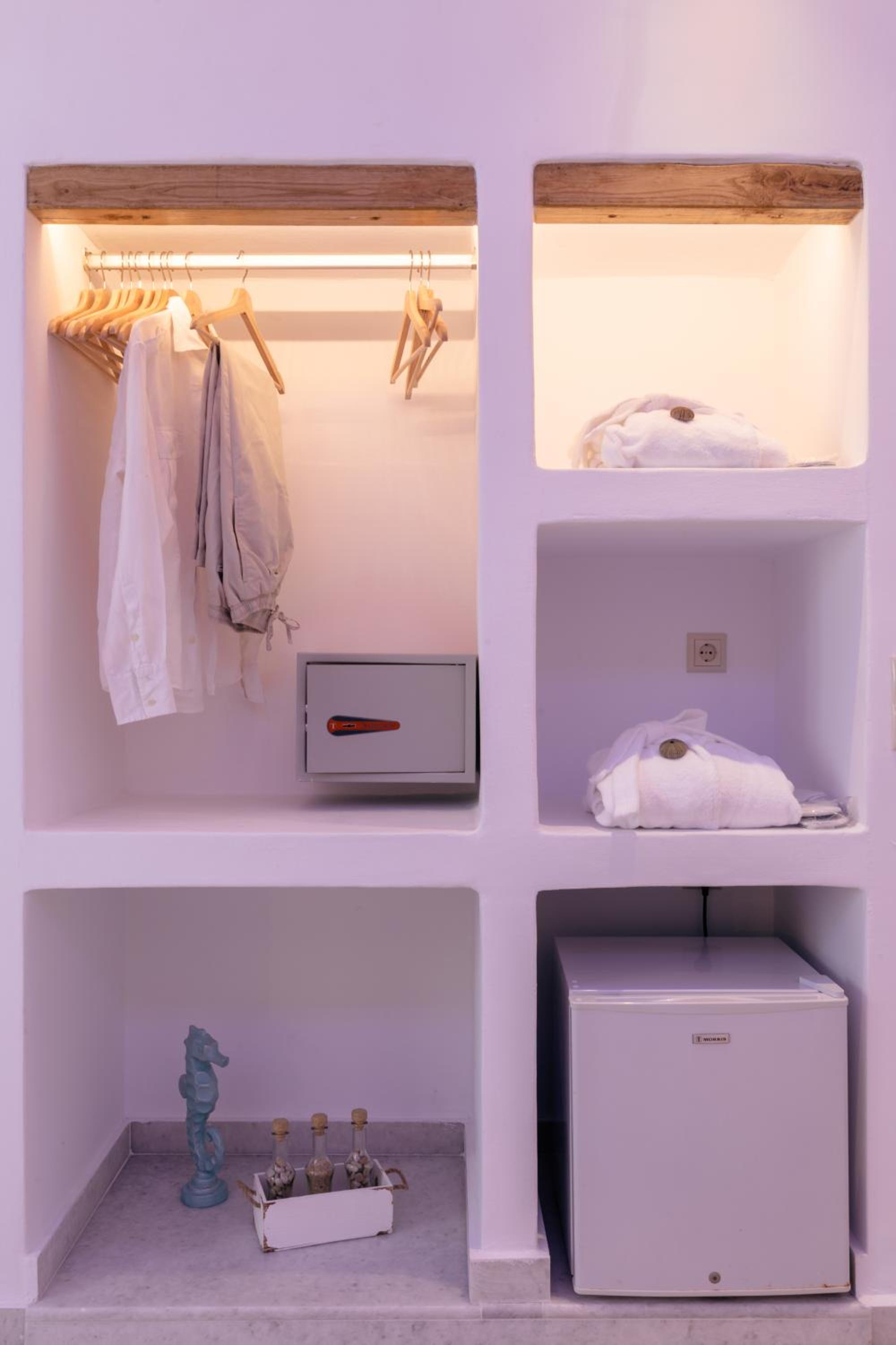 This beach hotel, built in Cycladic style, is superbly located just in front of the beautiful sandy beach of Mikri Viglia, on the south-west Coast of the island. Naxos town is located at approximately 17 km, here a number of bars, restaurants and taverns of local character can be found. Public transports links can be found just 100 m form the hotel premises. Naxos airport is located 13 km from the hotel.