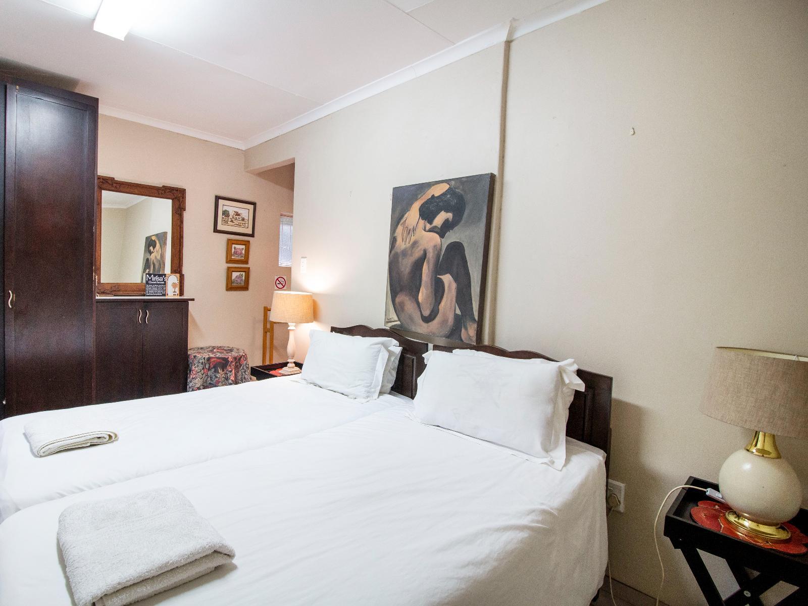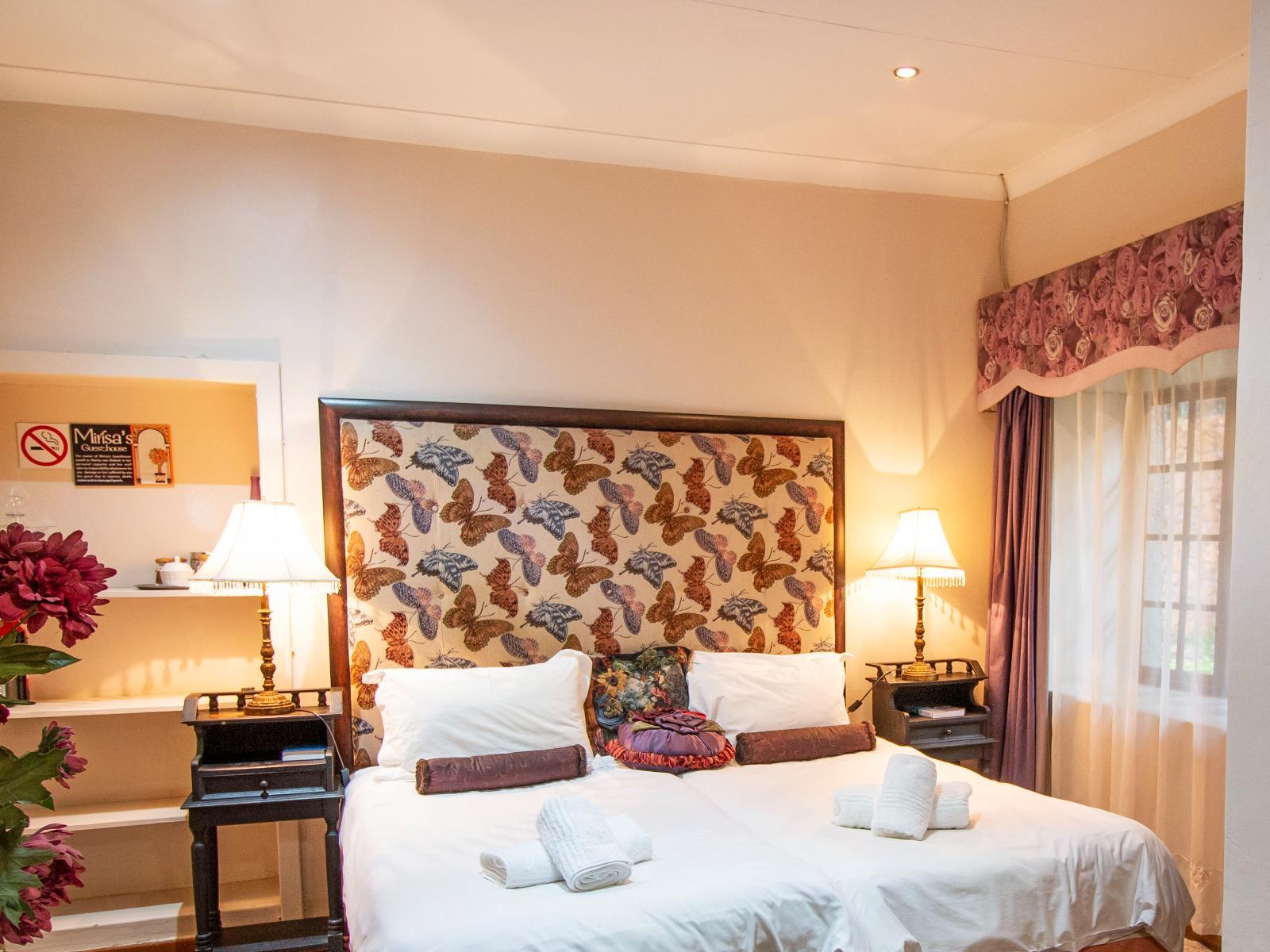 Mirisa's Guest House is situated in the tropical area of Pretoria North, set against the Magaliesberg mountains range. Set in a beautiful sub-topical-like forest with a relaxing feeling to it, there is a large swimming pool with an adjoining lapa to relax, read or enjoy meals. Both cottages are beautifully furnished with classic interiors and warm quality features.The guest house is well situated close to the Pretoria City Centre and is a short distance from the N1 Pietersburg Highway.Your host, Mirisa van Niekerk, will make you feel right at home. Come for