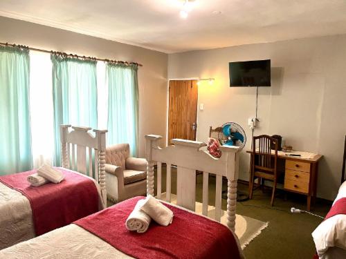 Mizpah Lodge offers a selection of comfortable and well-appointed accommodations in a tranquil garden setting, ideal for families, couples or solo travellers. Guests can choose from a Standard Twin Room with two single beds, a Classic Family Room with six single beds across two levels, two bathrooms and a refrigerator, a Comfort Family Room with a double and two single beds, a Deluxe Double Room with a double bed, or a Luxury Self-Catering Chalet with a queen bed and a fully equipped kitchenette.All rooms include fans and or air conditioning, heaters, desks, sitting areas, a TV wit