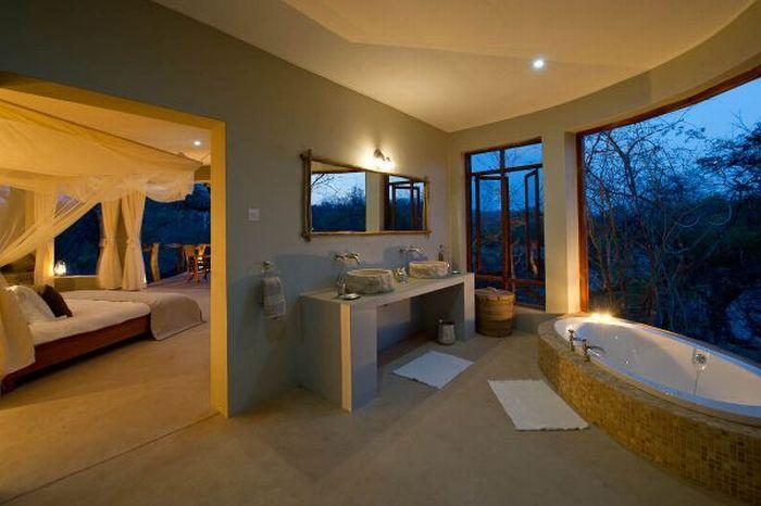 Surrounded by 7,000 hectares of private concession, Mkulumadzi enjoys an idyllic location at the confluence of two rivers. It’s the perfect combination of splendid isolation and first class facilities.The main lodge area comprises a restaurant, a lounge and a terrace, a bar, a shop, a fire-making area, a viewing deck and a swimming pool. The eight luxury chalets are tucked beneath the surrounding riverine forest of Marula, Leadwood trees and Star Chestnut trees. Each comprises a spacious bedroom and lounge area, an en-suite bathroom with sunk-in bath and double basins, an outdoo