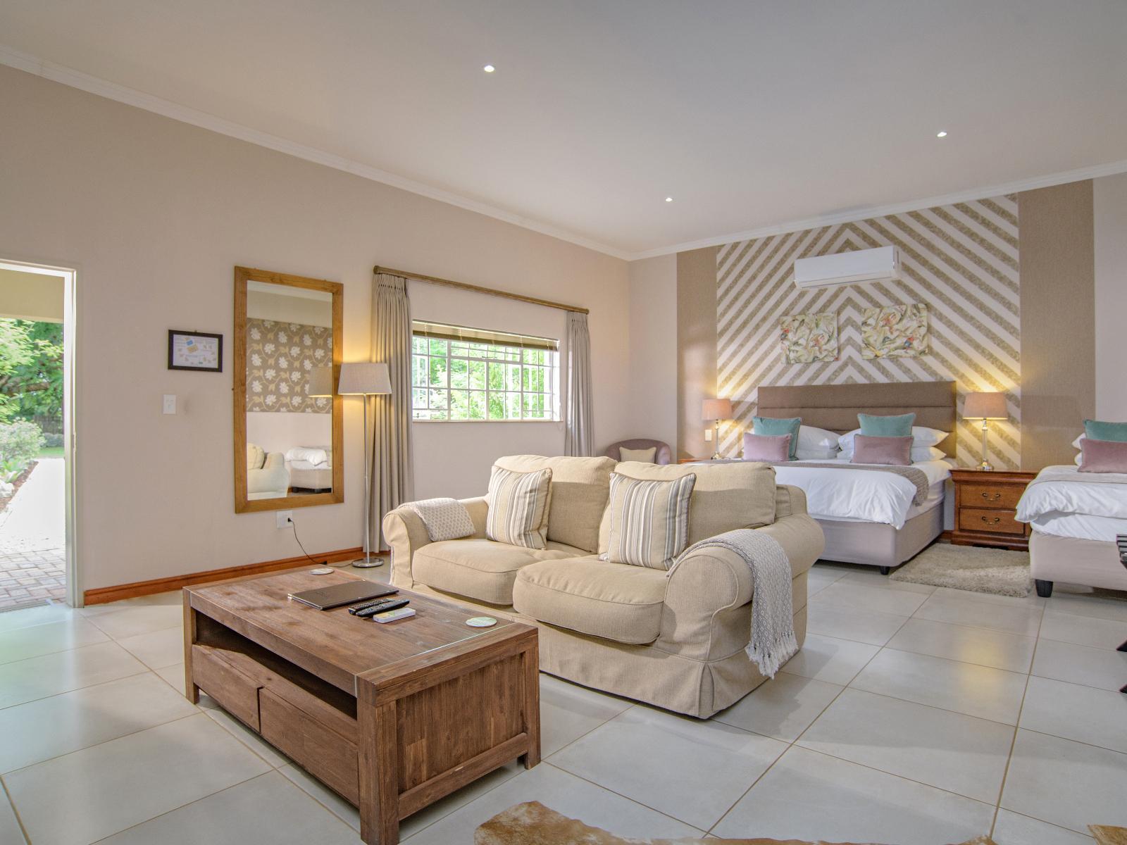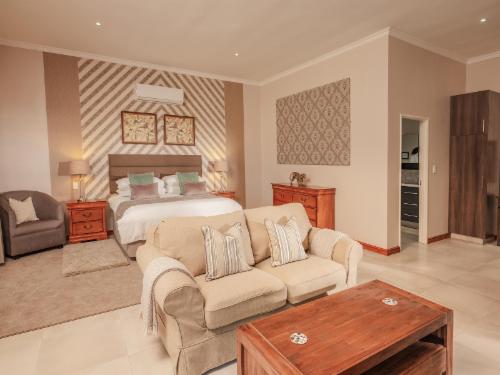 Escape to the picturesque town of White River and indulge in the enchanting beauty of Monkey Thorn Guest Lodge. Nestled on six hectares just outside the town, our lodge exudes charm and tranquility that will captivate your senses.Unwind in our spacious, luxurious and meticulously designed 64 square meter open plan rooms. Each room is thoughtfully appointed with comfort and privacy in mind, ensuring a memorable stay whether you're here for a quick stopover, a romantic weekend getaway, or an extended vacation exploring the magnificent Lowveld. Fall into blissful slumber on our king-s