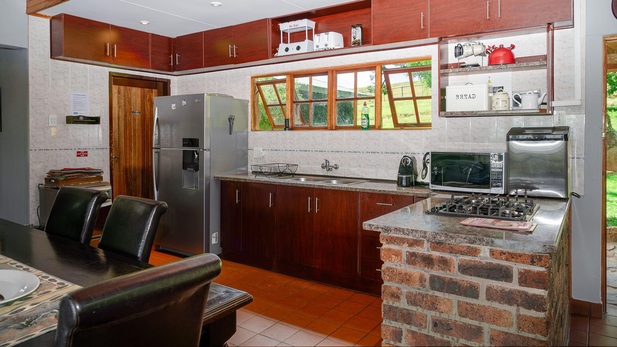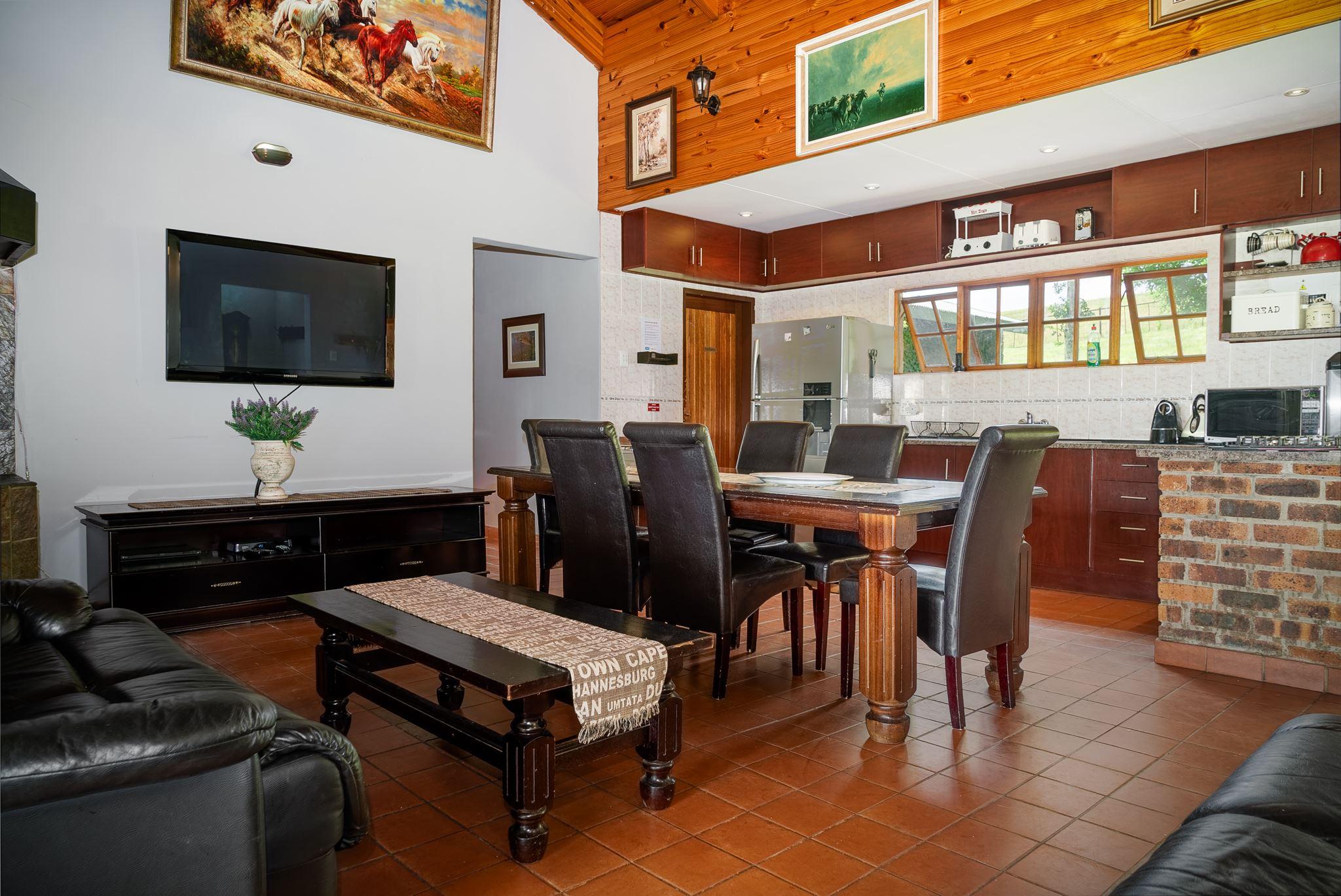 Moonlight Meadows is a self-catering home located on a tranquil 40-hectare farm, situated approximately 5.6 km from central Dullstroom. The farm boasts 4 well-stocked trout dams (fly fishing ONLY) where guests can fish on a catch-and-release basis, please remove the barb from your hook.This property can accommodate a large group of 14 persons and consists of 1 main house and 2 cottages. In the main house, there are 2 bedrooms, each bedroom furnished with a king-size bed and each room containing an en-suite bathroom with showers and one with a bath. The first cottage has