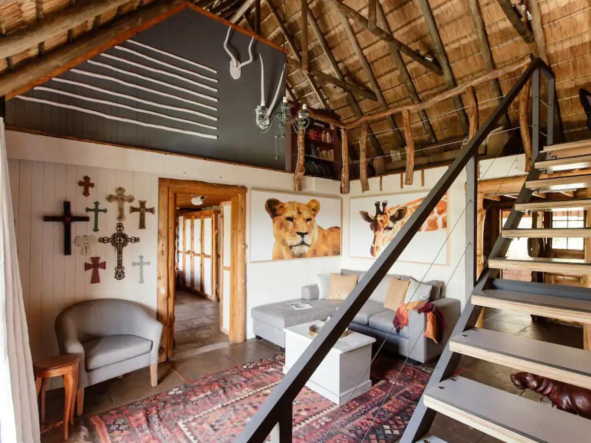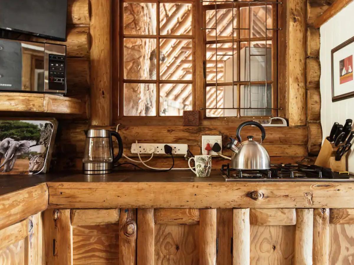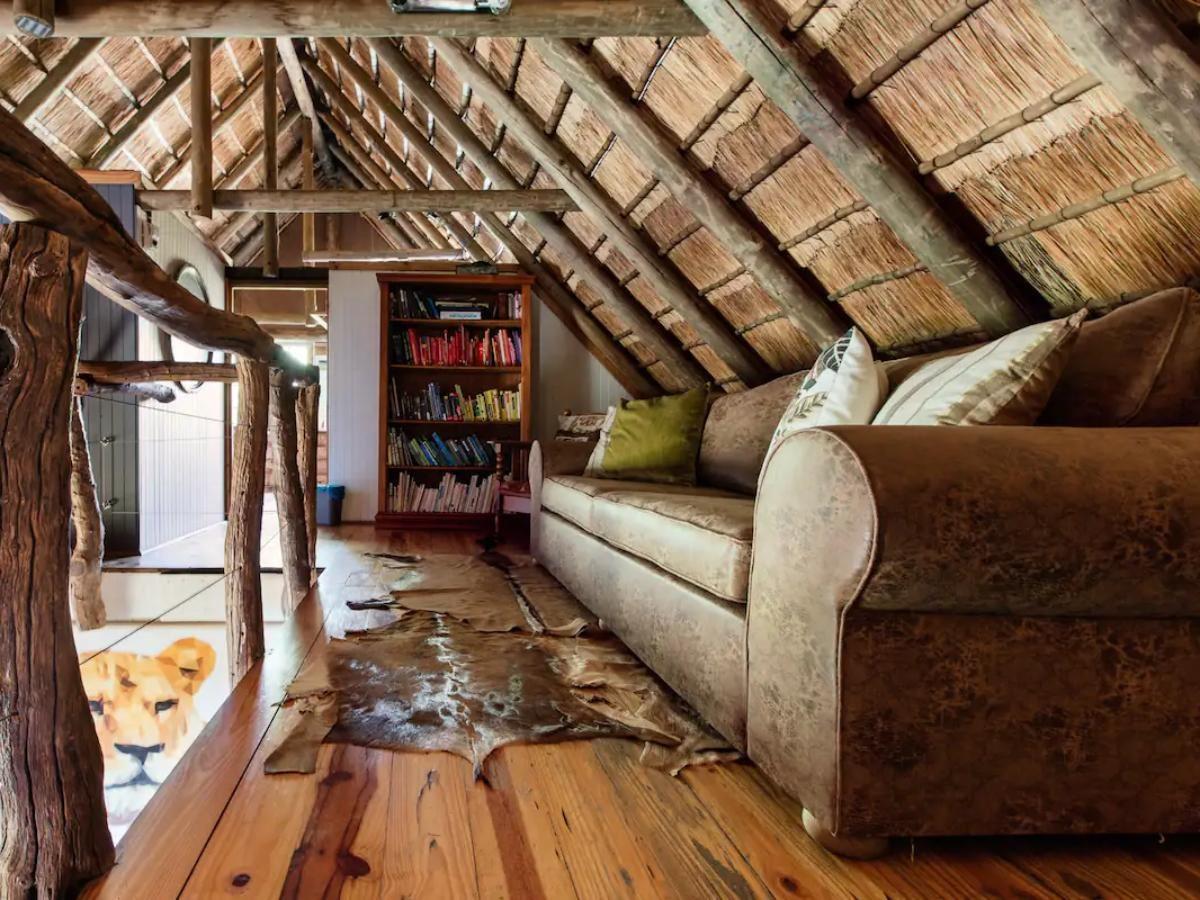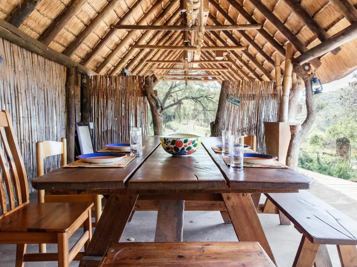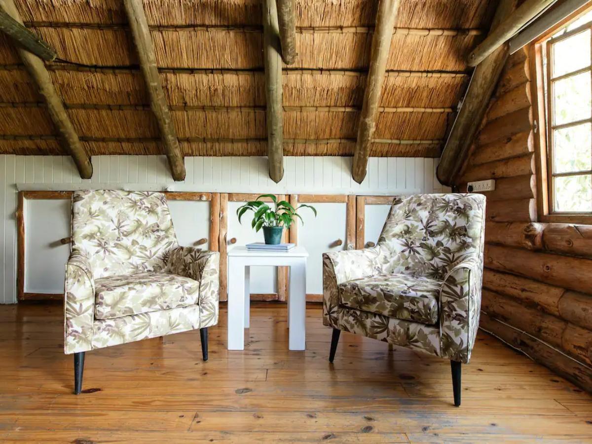 The holiday home sleeps maximum of six and comprises three bedrooms and one bathroom. The main bedroom is upstairs with a king-size bed & overlooks a huge Mulberry tree with amazing bird life. Bedroom two has direct access to the bathroom. Bedroom three has deck access overlooking the wild garden. The kitchen has a gas stove and other necessities. The property boasts a patio with a hot tub and a splash rock pool, BBQ/braai facilities and a pizza oven, as well as a charming reading nook on the top level, where guests can relax with a book. There is a small office desk available with