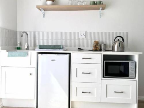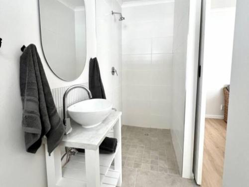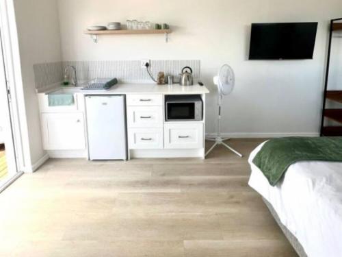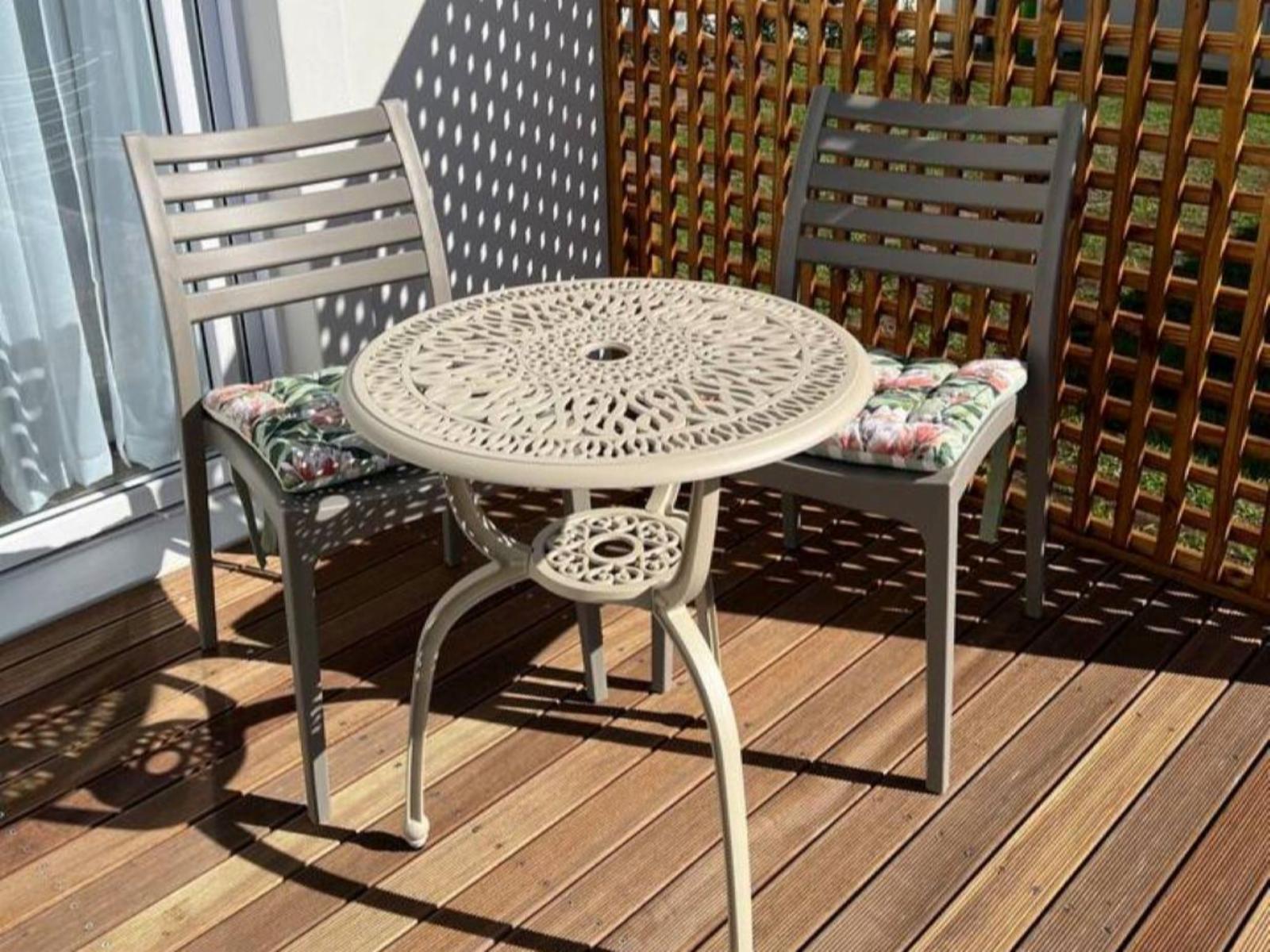 Mountain View Studio and Apartment Voëlklip offers two distinct accommodation options: one studio and one one-bedroom apartment. Both feature comfortable queen-size beds and provide beautiful views of the surrounding mountains and gardens.The studio includes a cosy sitting area, TV, complimentary Wi-Fi, and a bathroom with a shower. It is equipped with a kitchenette featuring a microwave, an induction-plate stove, a bar fridge, coffee and tea facilities, and kitchen supplies. Guests can enjoy the beautiful mountain view from the wooden deck, furnished with outdoor dining furniture,