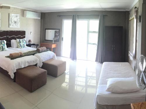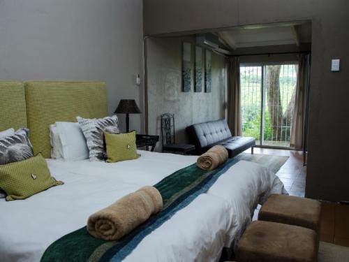 THE LODGE DESCRIPTION:OVERVIEW:Mountain Creek Lodge is situated in the mountains of the Sabie River Valley, where the beautiful surroundings are an adventure's paradise. The luscious warm valley, indigenous bush and the murmur of the flowing water awake your senses and invite you to relax and enjoy the rustic atmosphere.This luxurious self-catering lodge will cater for all guest needs. OUR VENUE CAN ACCOMMODATE INDIVIDUALS OR GROUPS OF UP TO 33 PEOPLE SHARING.There are 7 different UNITS AVAILABLE: The Main House (sleep max. 12), Chalet 1 (sleep max. 3) , Chalet 2 (sleep max. 2) and Chalet 3 (sleep max. 2) and 2 x 2-Bedroom Chalets (sleep max 4 persons per Chalet), House 2 (sleep max. 6) The rooms are soothing and relaxing after a long day. A private patio and braai area is available in each unit and makes for a perfect evening in the country. All our beds are single beds, we can however accommodate a few King size beds on limited availability.All our rooms have air conditioning.We have a selection DSTV channels for your enjoyment in each unit.The lodge is spacious, modern elegantly decorated, clean and neat, with cleaning services daily except on Sundays and public holidays. Some on-site facilities include a communal swimming pool, a dam, fishing, nature walks and bird watching and a beautiful entertainment centre filled with information of the area as well as a pool table, table tennis, darts and a selection of games and books.The vast open spaces and the beautiful nature that surrounds us, makes you feel relaxed, happy and loved.Whether guests explore the wonders of the Panorama Route, experience the diversity of Africa's wildlife and to see the Big 5, experience the exhilarating adventure activities on our doorstep, or just relax by the pool, guests will be sure to have an unforgettable time with Mountain Creek Lodge.Please remember to bring your own swimming towels and arrange with me if you need bath towels. Any lost or damaged towels will be charged at R300-00 per towel.VENUE BREAKDOWN:MAIN HOUSE:The Main house has 4 bedrooms, with 4 en -suite bathrooms. This is a full house with a kitchen, 1 dining room, and a sitting lounge , with a fireplace and a tv-lounge area. An outside boma braai area. (Sleep max. 12 sharing)Room 1: Sleep 4 persons family room. ( With a door separating the beds. 2 per room.), but they do share the same en-suite bathroom. Room 2: Sleep 2 persons + 1 sleeper couch if needed + en-suite bathroomRoom 3: Sleep 4 persons + en-suite bathroomRoom 4: Sleep 2 persons + 1 sleeper couch if needed + en-suite bathroom HOUSE 2: (Sleep max. 6). This is a 3 bedroom, 2 bathroom house, with a full Kitchen, Lounge / Tv room, Dining room, Air conditioning in all 3 bedrooms.A private boma braai area and a patio with a build-in braai / fireplace. Selection Dstv channels.Room 1: sleep 2 , Room 2: sleep 2, Room 3: sleep 2 Total = 6 single bedsCHALETS AND COTTAGE:The Chalets have fully equipped small kitchenettes, en-suite bathrooms. All Chalets have their own private verandas with built-in braai areas for your comfort. All the bedrooms are air conditioned for your convenience. Chalet 1: Sleep max. 3 (open-plan)Chalet 2: Sleep max. 2Chalet 3: Sleep max. 2Chalet 4: Sleep max. 4 - Two bedrooms, Two en-suite bathrooms. Small Lounge, kitchenette and a private veranda with a braai areaPrivate Cottage: Sleep max. 4 Two bedrooms, Two en-suite bathrooms, lounge and dining room area, kitchen and a private veranda with braai area.Have a lovely day.Melanie Mountain Creek Lodge