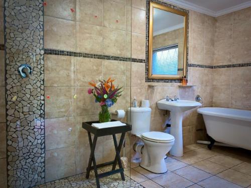 Experience one of the finest establishments in the Garden Route area, and the best choice for your stay.Set in a large and beautiful lush garden, this guest house offers bed and breakfast to seven beautiful rooms. Six of these rooms have double beds and en-suite bathrooms. The family room has a double bed, a separate room with two single beds and a bathroom, as well as a private patio with braai. All the rooms have coffee and tea trays and TVs with DStv. Soap and fresh towels are provided in the bathrooms.Dinner is available on request. The lapa has a big screen TV