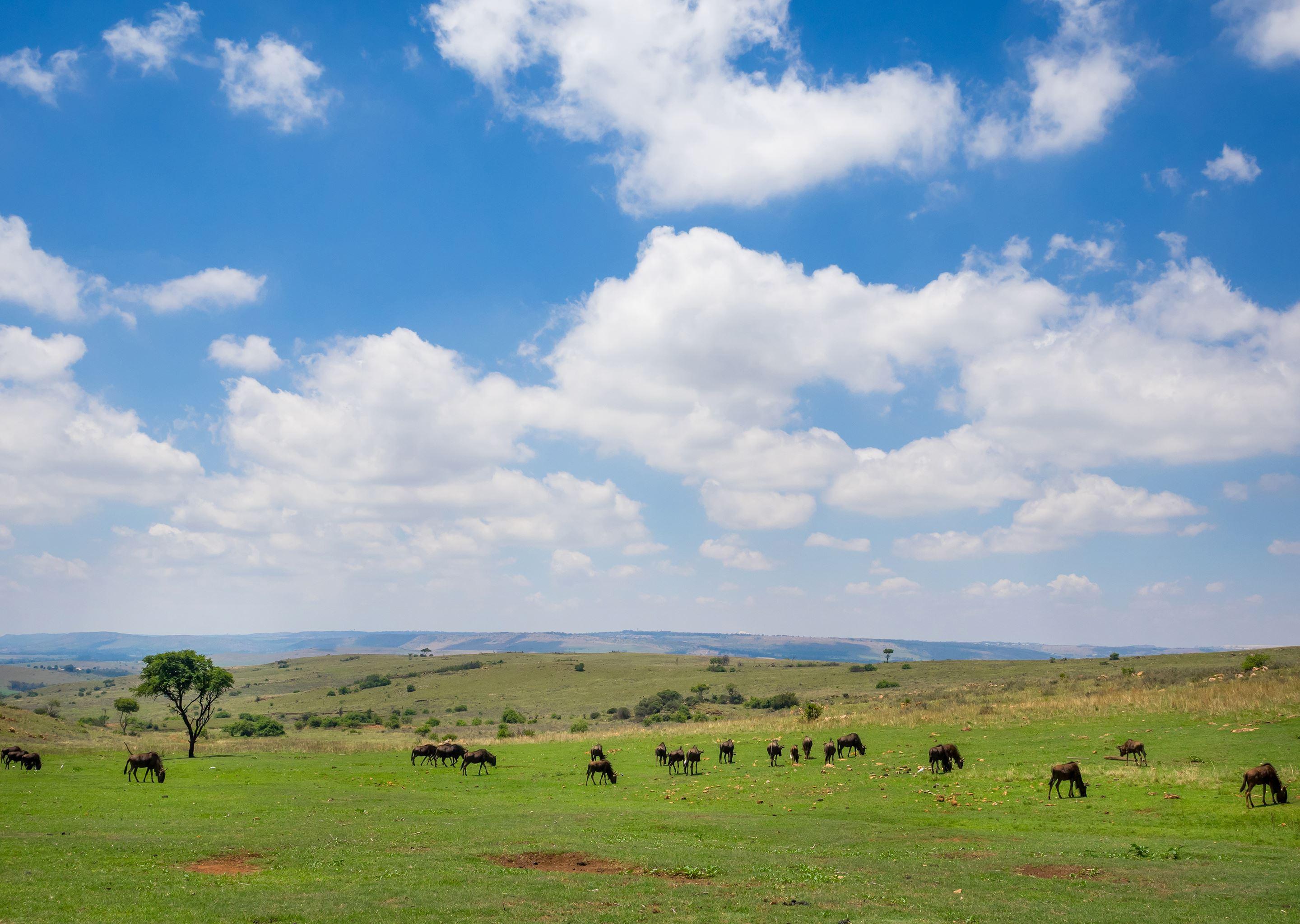 The game reserve is home to buffalo, giraffe, kudu, red hartebeest, impala, zebra, and a variety of birdlife.