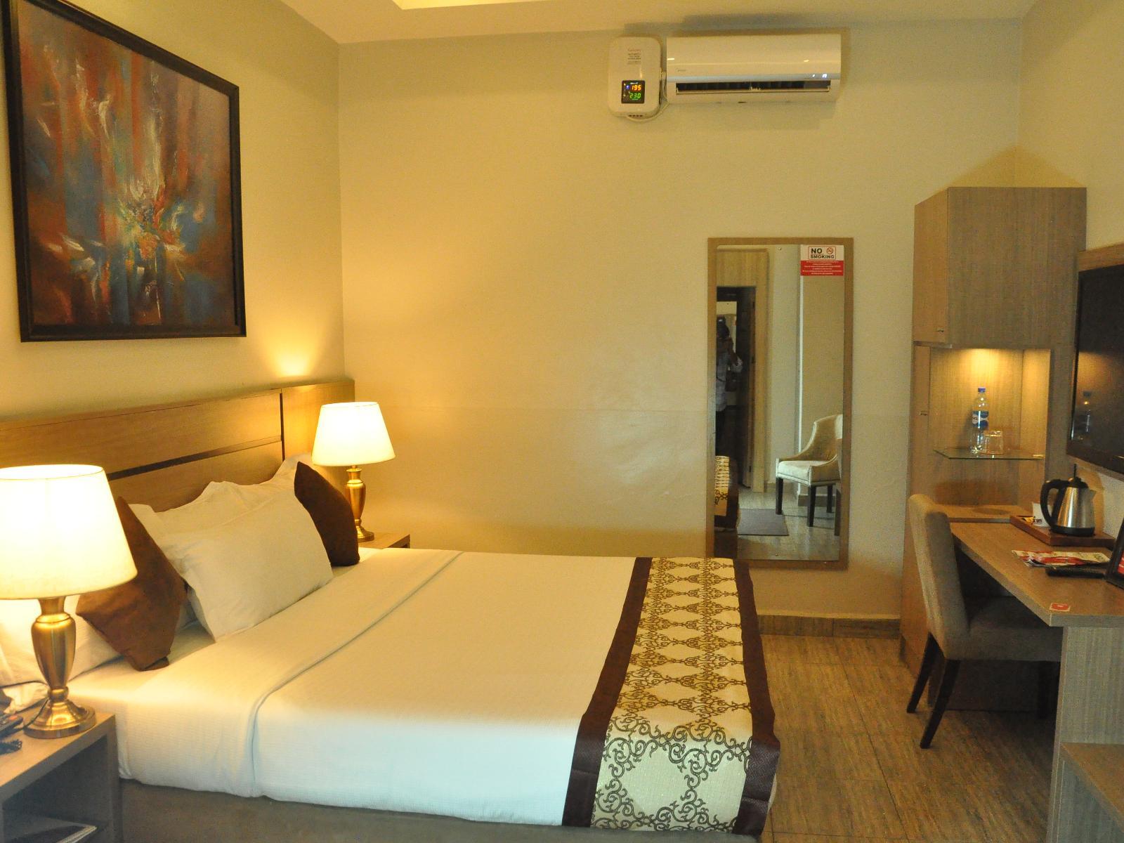 Situated in Abuja 2.4 km from Cameroon Embassy Moz 1 Executive Guest House features air-conditioned accommodation and a bar. Among the facilities of this property are a restaurant a 24-hour front desk and room service along with free WiFi. The accommodation offers a concierge service and currency exchange for guests. At the hotel the rooms have a desk a flat-screen TV and a private bathroom. All rooms will provide guests with a wardrobe and a kettle. Guests at Moz 1 Executive Guest House can enjoy a continental breakfast. Big Church is 5 km from the accommodation. The nearest airport is Nnamdi