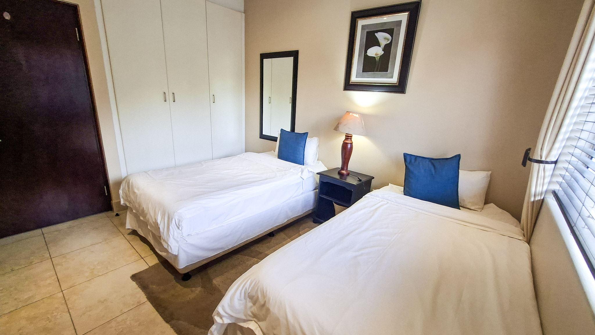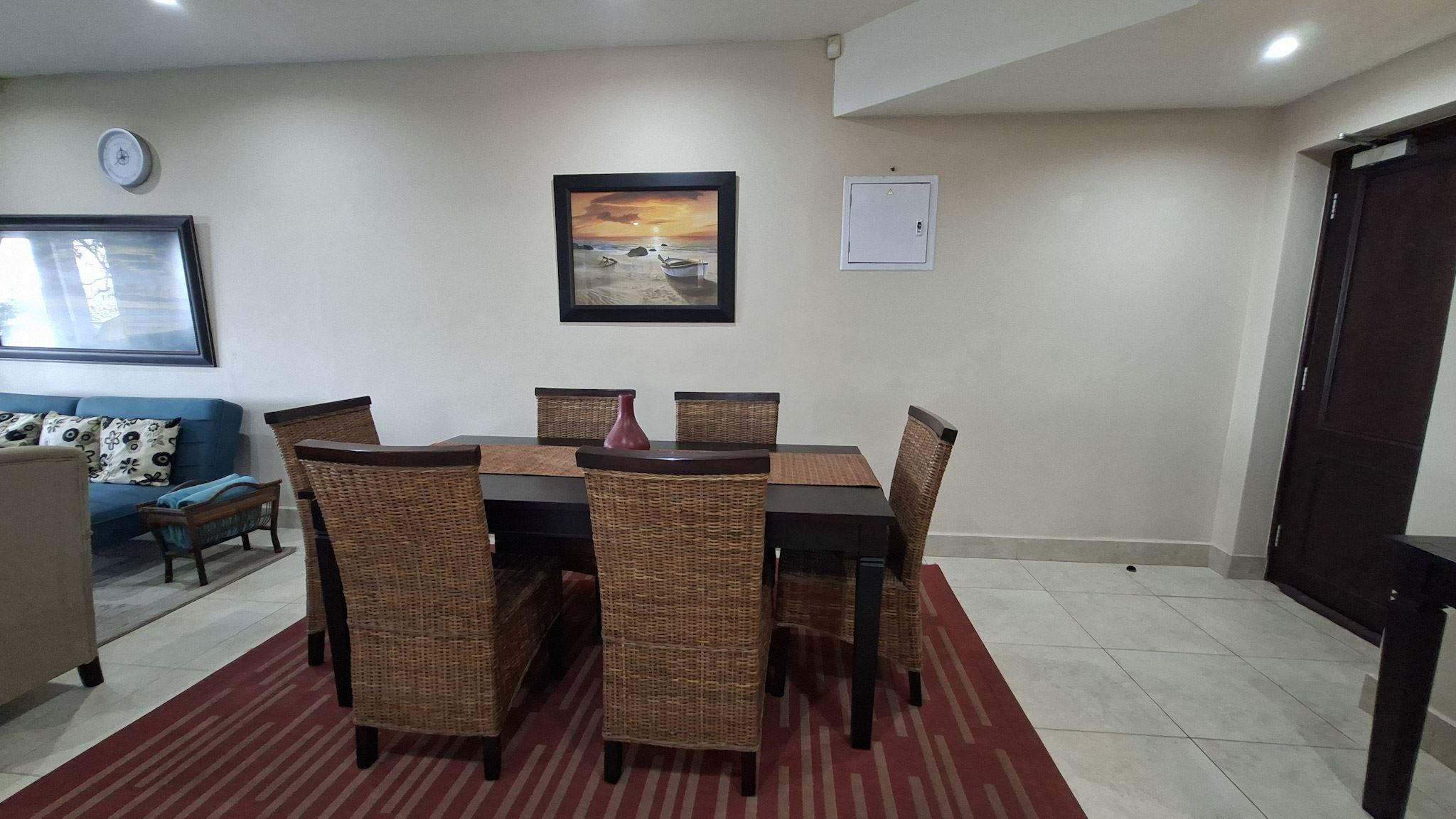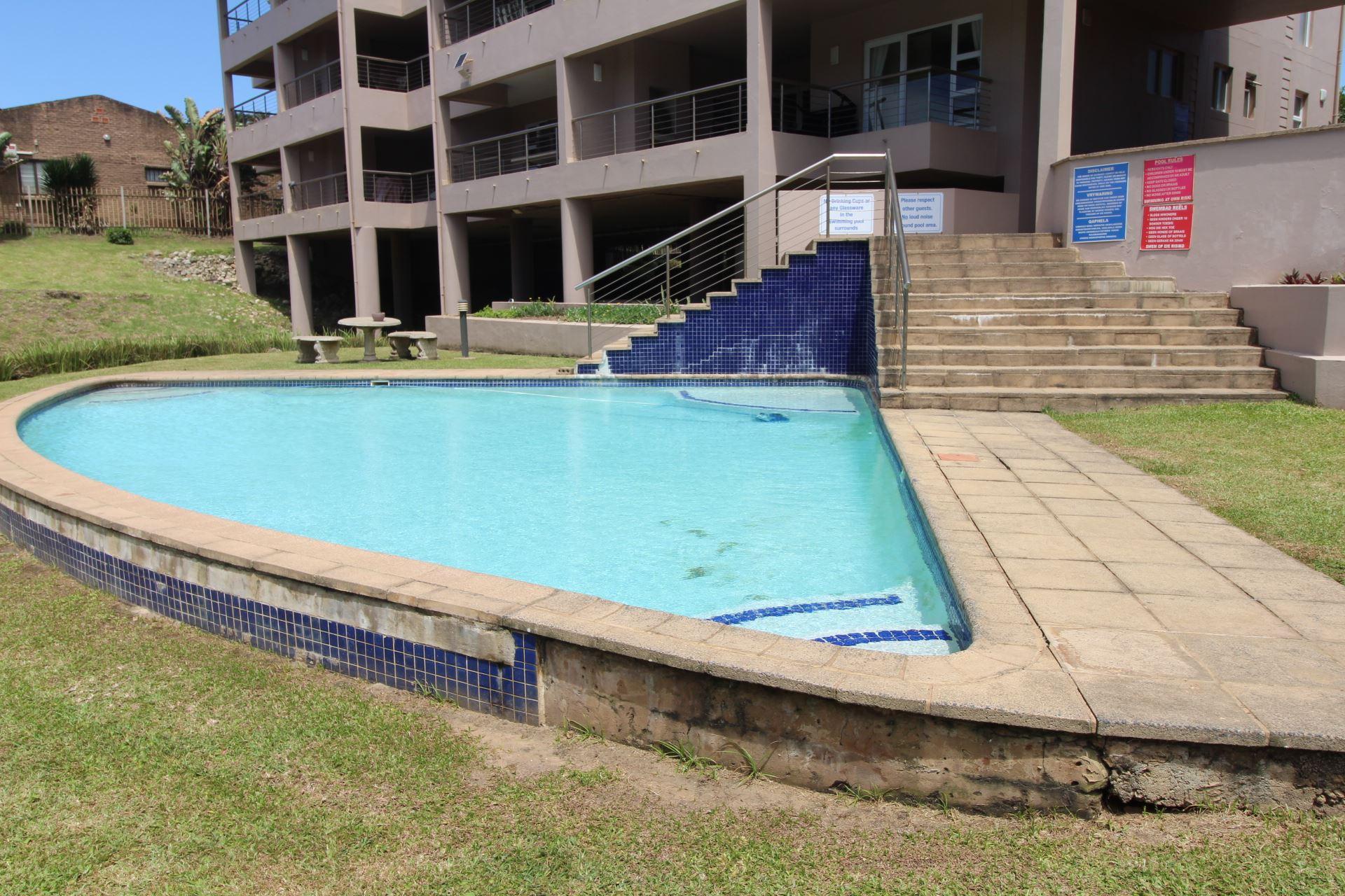 Mystique 7 is a self-catering apartment located in Shelly Beach. The complex is located on the beachfront and is conveniently situated a short drive from Shelly Centre and the South Coast Mall.The apartment can accommodate up to six guests and comprises three bedrooms, two bathrooms, and an open-plan kitchen and living area. The main bedroom contains a double bed in the main bedroom, and an en-suite bathroom fitted with a bath, a toilet, and a washbasin. The second bedroom contains a double bed, and the third bedroom contains two single beds. The second bathroom is fitted with, a