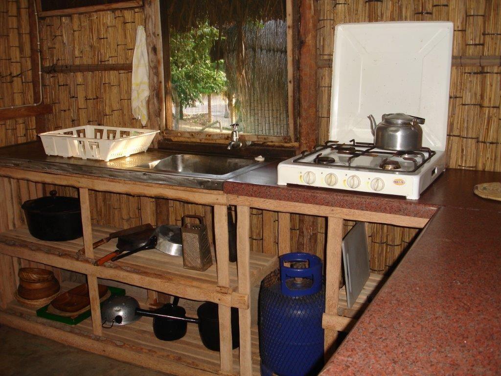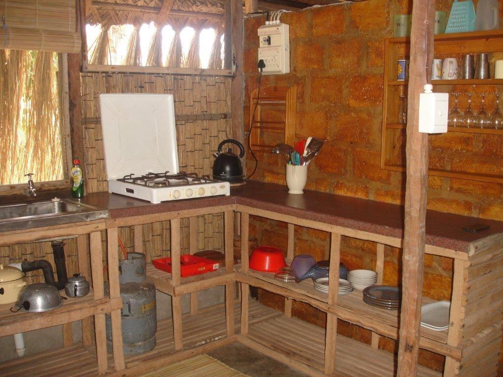 Affordable and ideal for a small family of 4 or a romantic couple! Cosy Corner is a 49m2 traditionally built open-planned reed, thatch, brick and timber cottage with a 2m wide shaded patio outside, where you can sit in peace and relax, Your view is of a vast amount of coconut palms and the white sand dunes, that make up our property. Cosy Corner is open-plan living, consisting of: kitchenette, dining, and sleeping areas. We've added a traditional grass wall partition between sleeping areas, creating 2 semi private spaces for while you sleep, as well as an enclosed bathr