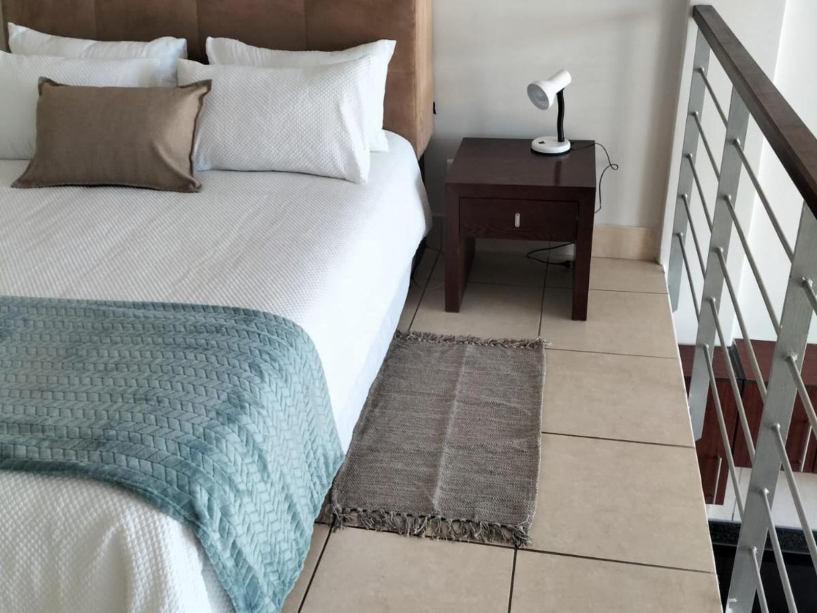 Situated in De Bakke, Mossel Bay, the lovely duplex self-catering unit is perfect for 2 people in the Nautica complex within 1 km from Santos Bay and 2.3 km from Diaz Beach.The studio is furnished with a queen-size bed in the loft area with a view of the ocean and has an en-suite bathroom fitted with a shower and a toilet.The ground-floor open-plan kitchen is equipped with a stove and oven, microwave, fridge, and tea and coffee facilities. A washing machine, a tumble dryer, and a dishwasher are provided for convenience. The lounge area offers comfortable seating, and a TV str