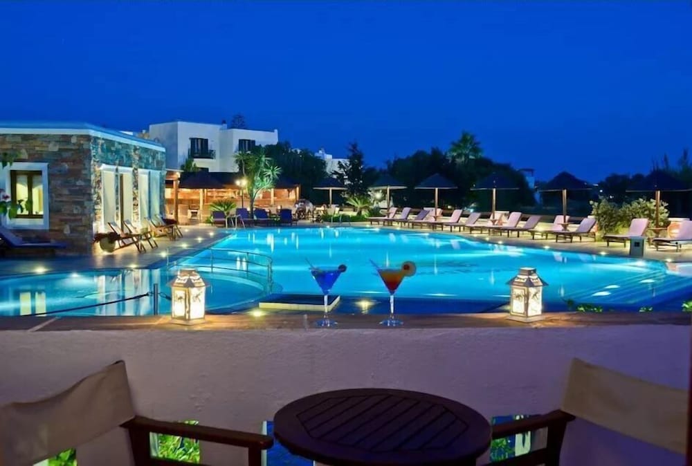 The 3-star Naxos Resort Beach Hotel built a few metres from the endless sandy beach of St. George in Naxos incorporates the local Cycladic and Venetian architectural style.The hotel boasts 88 luxurious and comfortable rooms decorated with warm colours and equipped with Wi-Fi internet access. All rooms offer balconies with view either to the gardens or the sea and the mountains.The steam room the sauna and the hot tub facilities offer guests moments of relaxation and rejuvenation.Guests can also taste Greek and International cuisine while enjoying the view of the swimming pool and the beach of St. George at Ariadni Restaurant or try exotic cocktails at the Mythos Bar.