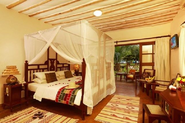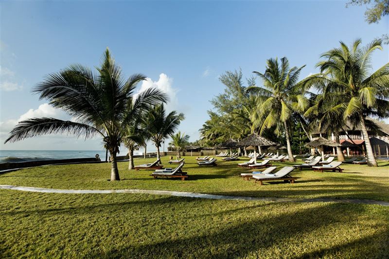 Neptune Palm Beach is set in beautiful tropical gardens, on a prime beachfront location at Diani Beach, South Coast. The resort is approximately 40 km south from Mombasa and approximately 45 km from Moi International Airport. Each makuti-roofed cottage is beautifully furnished and has private bathrooms with walk-in showers, mosquito nets and satellite TV. The resort has a large fresh water swimming pool and have direct access to the resorts next door that offering water sport centrum, water volley ball, beach volley ball, aqua-gym, mini golf, darts, table tennis and two flood-lit t