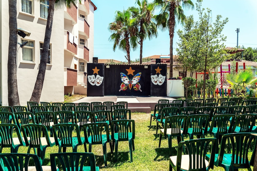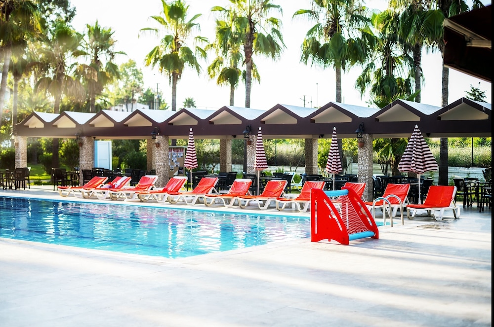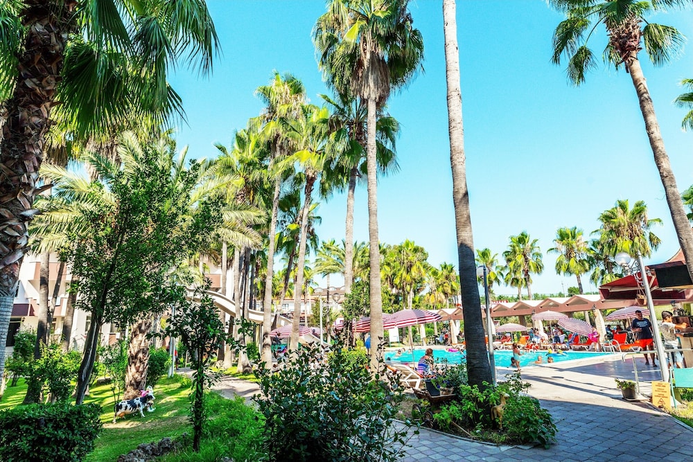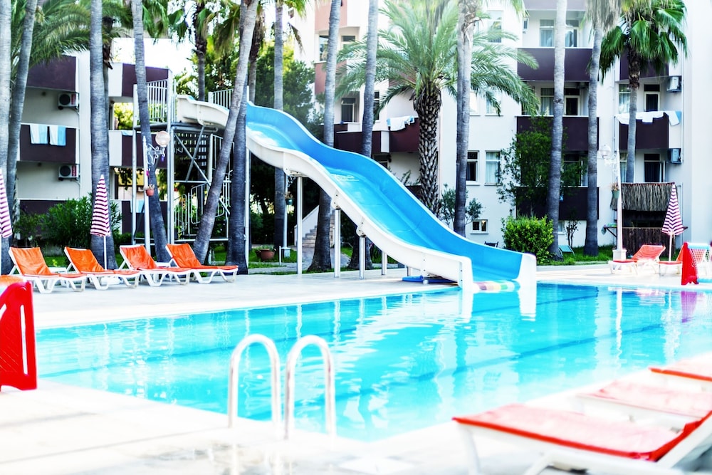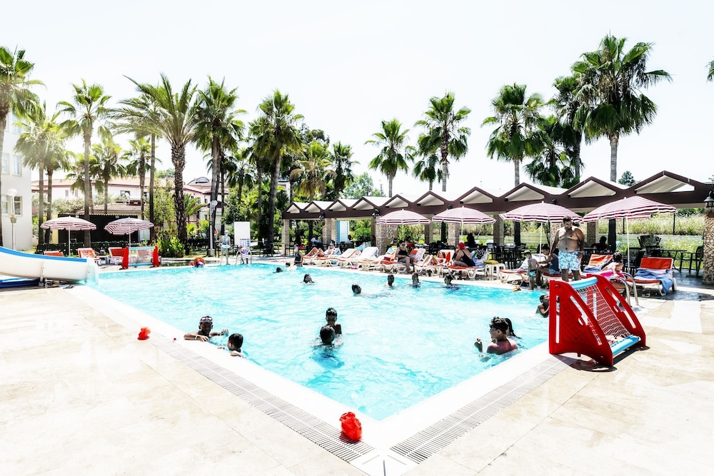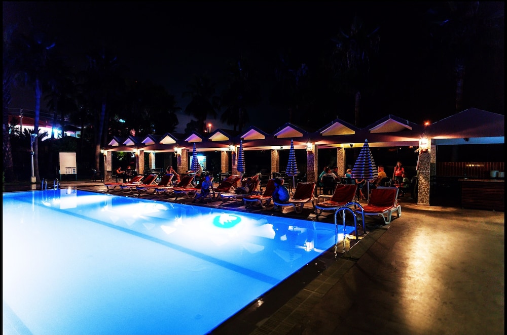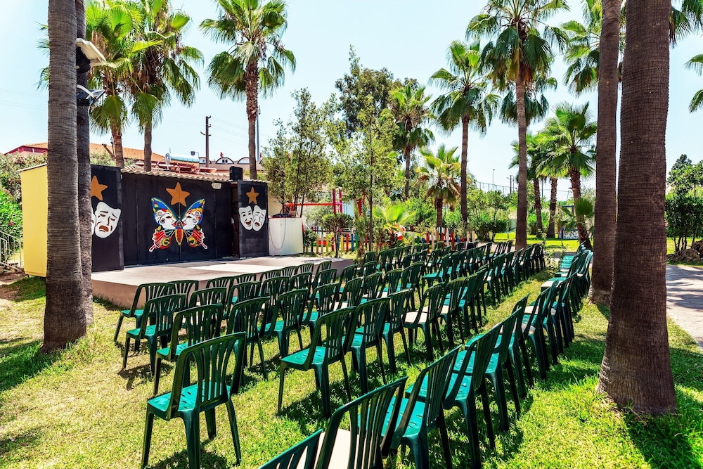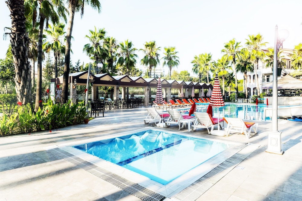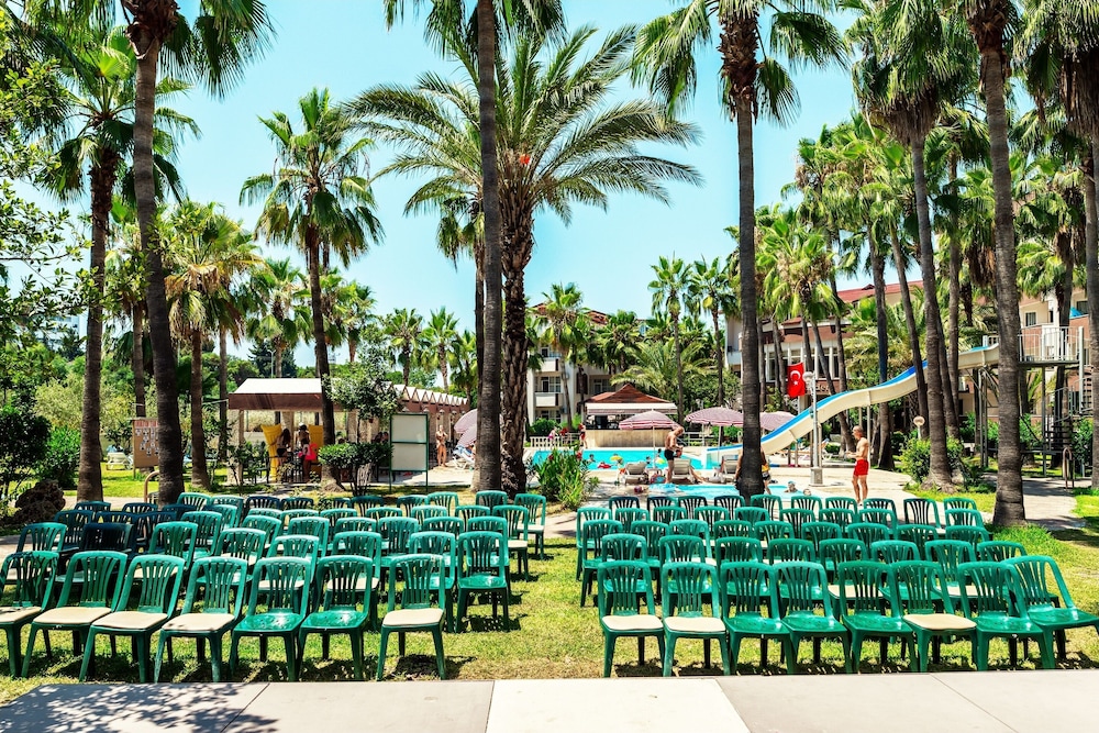 This lovely holiday hotel is located within walking distance from the centre of Çolakli and 350 m from the beach (free shuttle service). The historic town of Side with its ancient sites is 9 km away, the airport of Antalya 55 km. The hotel offers 102 rooms, 24-hour reception, currency exchange, TV room, restaurant, 3 bars, outdoor pool, children's pool, mini-club, wellness, medical assistance and laundry service.