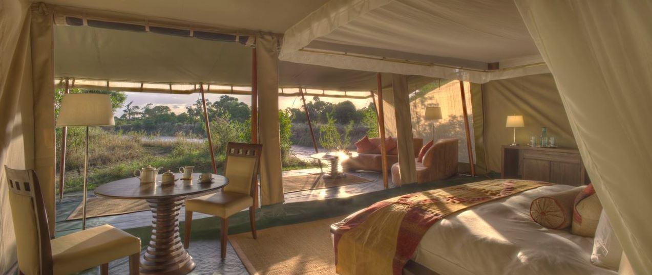 Ngerende in the Wild Riverview is an exclusive and luxurious tented camp, located on the banks of the Mara River surrounded by indigenous trees and wildlife.The camp is a true bush experience with the added luxury of a private kitchen with personal chef, 4x4 land cruiser vehicle and experienced professional guides.The two large Riverview suites are tastefully furnished and guests can dine under the stars, toast to great sunsets and be spoilt by your very own private butler. Well situated, the Ngerende in the Wild Riverview takes full advantage of the abundan