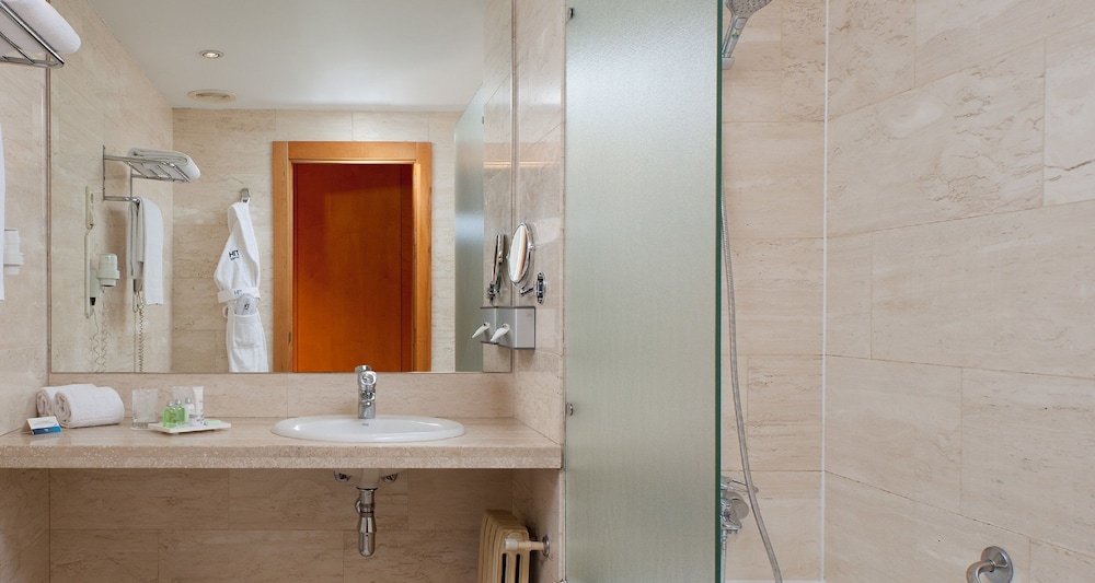 Ideally located in Salamanca district, at only a 15-minute drive away from the city centre and within walking distance from the Bullring, this fantastic hotel offers all the comforts of a modern accommodation with easy access to the main sites of the city. The property features excellent traffic connections and Madrid-Barajas Airport is about 10 km distance. The spacious guest rooms are elegantly equipped with modern furniture, offering a warm and inviting ambiance. Standard facilities include free Wi-Fi, soundproof windows and individually controlled air conditioning. Travellers may set up for a busy day of sightseeing with an extensive breakfast buffet every morning, while for lunch and for dinner, a selection of delicious local dishes awaits them at the on-site restaurant. The establishment also features a cosy bar and an outdoor terrace with a cafe serving drinks and snacks. Other hotel services include a sparkling outdoor pool, a tennis court and excellent meeting facilities.