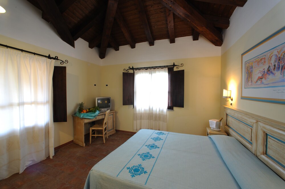 Description: Next to the village of Budoni, the hotel, recently built, it is set in a very suggestive area of enchanting beaches with fine sand, surrounded by dense pine trees and Mediterranean scrub. Perfectly situated and within easy reach of the most famous localities of the coast, above all San Teodoro. Architectural shapes, its gardens, its position compared to the sea, the quality of Mediterranean food and the wide entertainment programme, make the hotel one of the best in Sardinia.Beach: only 300 mt from the village, a very long beach of fine white sand which gently slopes towards the crystal clear sea, making it an ideal destination for families with children. The private beach is easly reacheable by a pathsurrounded by wonderful oleanders, which cross the naturalistic area of S. Anna. A comfortable wood boardwalk takes you to the private area reserved for guests, which will have available, included in the Club Card, 1 sun umbrella and 2 sunbeds per room from the 3rd row and over (1st and 2nd row on request, with a fee to be paid on the spot). The private beach is equipped with washing facilities, showers and it is suitable for clients with special needs. There are also canoes for water sports lovers. Possibility of renting beach towels.Accommodation: the structure has 268 rooms with 2/4 beds, composed by one bright room, furnished in a classical Sardinia style, with a double bed and 1 single bed in the triple room, in the quadruple there’s a bunk bed. All the rooms are equipped with a bathroom with shower and hair dryer, telephone, air conditioning/heating, tv, mini-fridge and safe. Almost all the rooms are situated on the ground floor and surrounded by a large park and lush gardens. Some of the rooms have a balcony, a veranda or an equipped patio. Activities & Services: 3 swimming pools (1 for children), bazar, massage area, main restaurant, Grill restaurant “Amare” with sea and meat grilled specialties, 2 bars, reserved parking for the Resort’s guests, meeting room up to 120 seats; medical service on request and with a fee.Wi-Fi: with a fee in the hall and main bar.Restaurant: international breakfast, buffet lunch and dinner (included mineral water, beer and soft drink on tap) at the main restaurant. Assigned tables for the whole stay. During the week a typical Sardinian dinner and a Gala dinner are organized. On reservation, in the grill restaurant “Amare”, served lunch and dinner, with antipasto/side dishes and drinks included; once a week, with a fee and on request, special dinner “Lobster Night” with lobster and seafood specialties. For breakfast, “Dormiglione” corner for those clients who want to have a light breakfast with American coffee and croissant from 9.45 am to 11.00 am. Natural Lifestyle Area: for those clients who choose a healthy cuisine, during breakfast there will be a corner with specific products (biscuits, melba toast, rice crackers, cakes, soy and rice milk, natural honey, biological jam, cereals, corn flakes, fruit juices and vegetables).Celiacs: basic packaged products (bread, pasta, biscuits). Clients could integrate with personal products. To be communicated at the moment of reservation in case of food intolerance and/or food allergy.Baby feeding area: available for children and free of charge. Equipped space with work-surface, sink, fridges, bottle warmer, microwave, mixer and sterilizer, pots and dishes, place mats. Furthermore basic cooked or not food is available: vegetal soup, vegetables puree, fresh sauce, pasta, fresh milk, yogurt, jams, biscuits, infusions, tea, fresh fruit, meat, fish. Early childhood dried or liquid milk, homogenised food, specific products. ** All Inclusive is intended as Soft all Inclusive: it includes full board and beverage during meals (mineral water, wine, beer e soft drinks on tap). At the two Bars, from 10,00 am to 10.00 pm, unlimited consumption (on tap in plastic cups) of water, orange soda, cola, fruit juices, granitas, cold tea and coffee. ”Aperi-time” at the main bar from 11.30 am to 12.15 pm and from 7 pm to 7.30 pm. With a fee: consumptions of national and international liqueurs and spirits, beverages and water in bottles or cans, ice creams, snacks and packaged products. Everything not included in the Soft Inclusive.***Entertainment & Sport: our Nicolaus Team, will entertain you with a rich programme of games, sports, competitions, collective tennis, aerobics and dance courses. Evening entertainment and piano bar, shows and theme nights. Nicolino Club, in an equipped area with play area, with qualified staff in the company of our mascotte Nicolino. It will entertain the little guests with: Nicolino Baby Club 3/8 years and Nicolino mini Club 8/12 years which will offer them a lot of sports, games, educational and recreational activities. The children will have the time of their lives. Finally also the Nick Club 12/18 years teenagers can socialize and share their adventures with a rich sports programme and dedicated parties.during the sportive appointments and dedicated parties. The structure has 3 tennis/football polyvalent courts, 1 futsal/basket polyvalent court, volleyball, equipped fitness area, archery, beach volley, beach tennis, boules court, canoes, table-tennis. Nicolino Club area with playground. Club Card (extra Fee): includes the access to swimming pool, day and evening entertainment, beach service, use of the sport area with the use of the courts and the fitness area. Only for hotel guest's, free shuttle service for the beach at scheduled times. With a fee: laundry service, stroller and bike rental; excursions, guided immersions and based/advanced diving course with equipment rental, baby sitting service, shuttle service to Budoni centre.