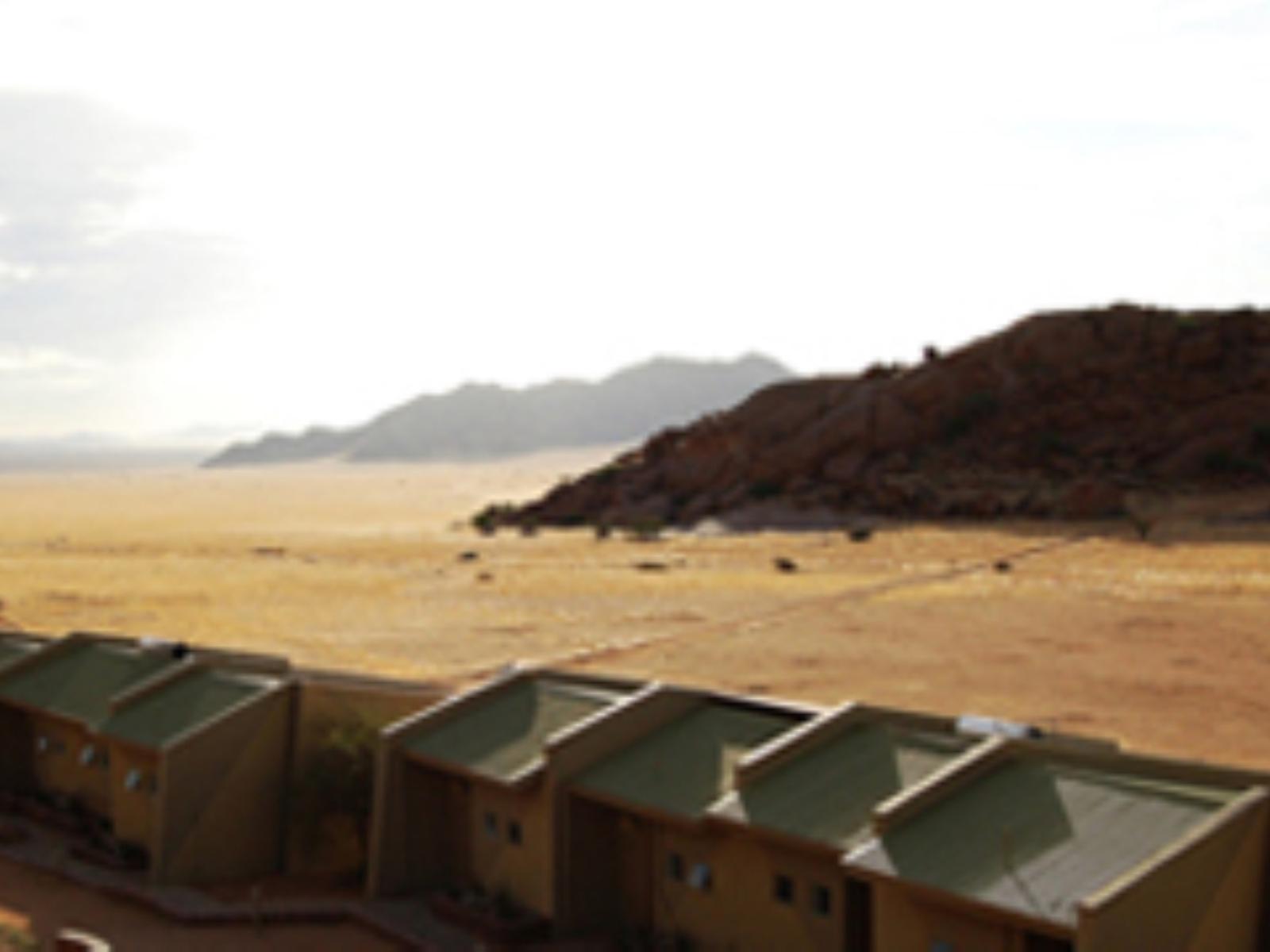 Facilities: The Soft Adventure Camp is located on open plains with granite hills as a backdrop. It has a beautiful view onto the open plains with a nearby borehole, where springbock and oryx often come to drink. Each of the 15 units is built on a diamond shaped stance. The chalet is based on a fixed structure with canvas partitions. It is spacious and offers all comforts of a nice contemporary hotel room. Each of the rooms have en-suite facilities with shower and toilet, and with their own private verandah in order to enjoy the beautiful sunsets of the Namib Desert.