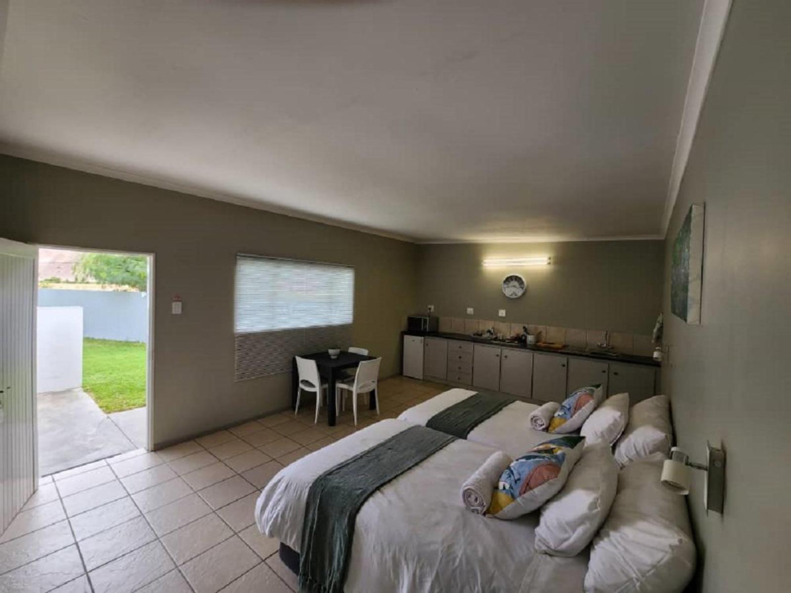 The Noordoewer Self Catering Chalets are fully equipped self-catering chalets located in the town of Noordoewer which lies on the banks of the Orange River on the border between Namibia and South Africa.Accommodation is provided in five modern and spacious self-catering chalets, each with an open-plan layout. The chalets are air-conditioned, and each contain a work desk or dressing table, an en-suite bathroom with a shower, a dining table and chairs, and a kitchenette fitted with a two plate hob, fridge, microwave, and kettle. One of the chalets is ideal for a family and has a loun