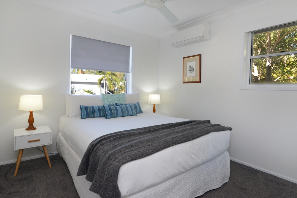 Located in Noosaville (Noosa), Noosa Entrance Waterfront Resort is close to Noosa Marina and Noosa Beach. This 4.5-star hotel is within close proximity of Tewantin Noosa Golf Club and Noosa National Park.Rooms Make yourself at home in one of the 95 individually decorated guestrooms, featuring kitchens with full-sized refrigerators/freezers and stovetops. Rooms have private furnished patios. Flat-screen televisions with cable programming are available for your entertainment, and DVD players are also provided. Conveniences include phones, as well as microwaves and coffee/tea makers. Make use of convenient amenities such as complimentary wireless Internet access, tour/ticket assistance, and barbecue grills.Business, Other Amenities The front desk is staffed during limited hours. Free self parking is available onsite.
