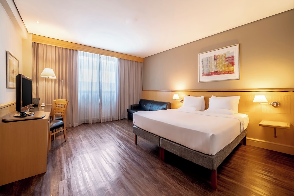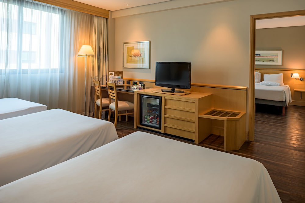 This city hotel lies close to the most important exhibition centres of Latin America, the Expo Nord and Anhembi. The hotel is conveniently situated 13 km from Guarulhos Airport and a 5-minute drive from the Rodoviária do Tietê bus terminal. It is also 600 metres from Lar centre Shopping Mall and 8 km from the city centre. The hotel has a total of 418 rooms and includes 11 conference rooms and a business centre. is located between Expo centre Norte and Anhembi Convention Centres. It offers an indoor pool, a leisure area for families and a Japanese restaurant. All of the rooms are well - equipped as standard. In addition Sushi Bar, the hotel serves international cuisine and has live music on Saturdays on its restaurant. The hotel features a fitness centre and a relaxation area with a sauna and hot tub. There is also a playroom and games for children.